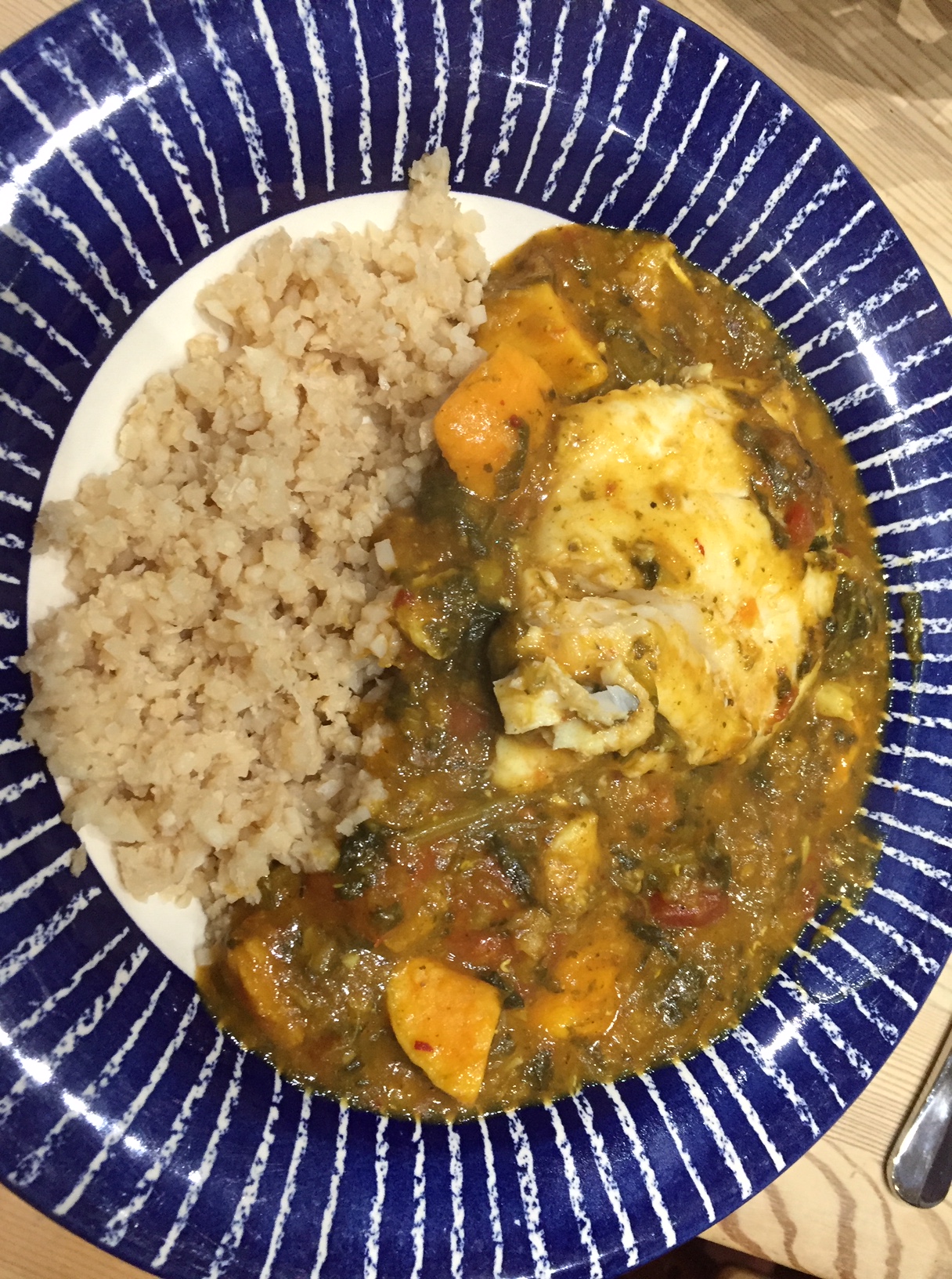 Serve with rice or steamed cauli-rice. The curry and the succulent fish complement each other. I don’t chop the fish up as you want to see the pieces.