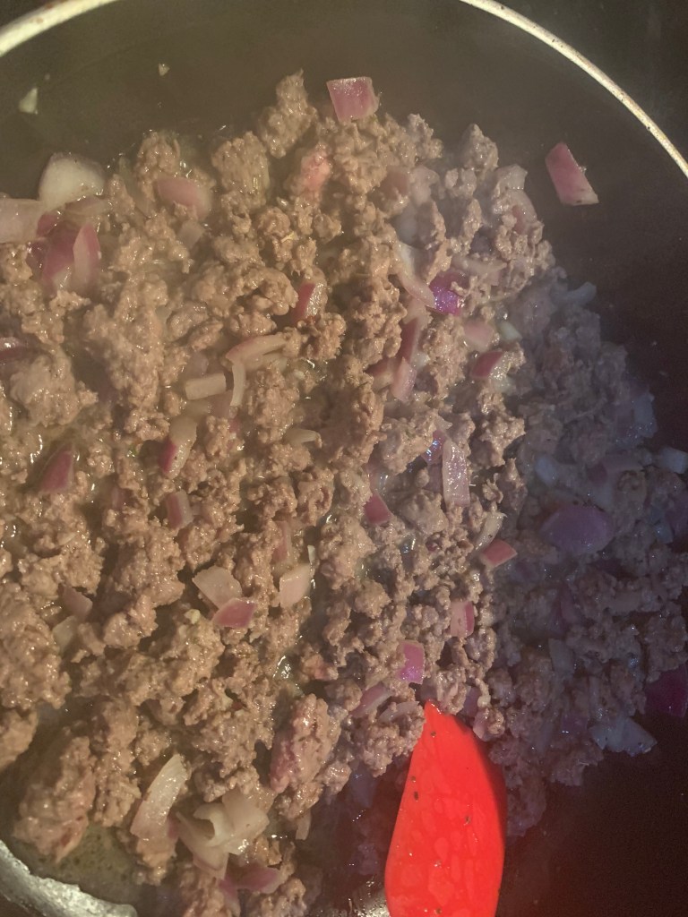 - 1 pound of ground beef (I used grass-fed ground steak and halved the meat as I was adding cheese to the mashed cauliflower)