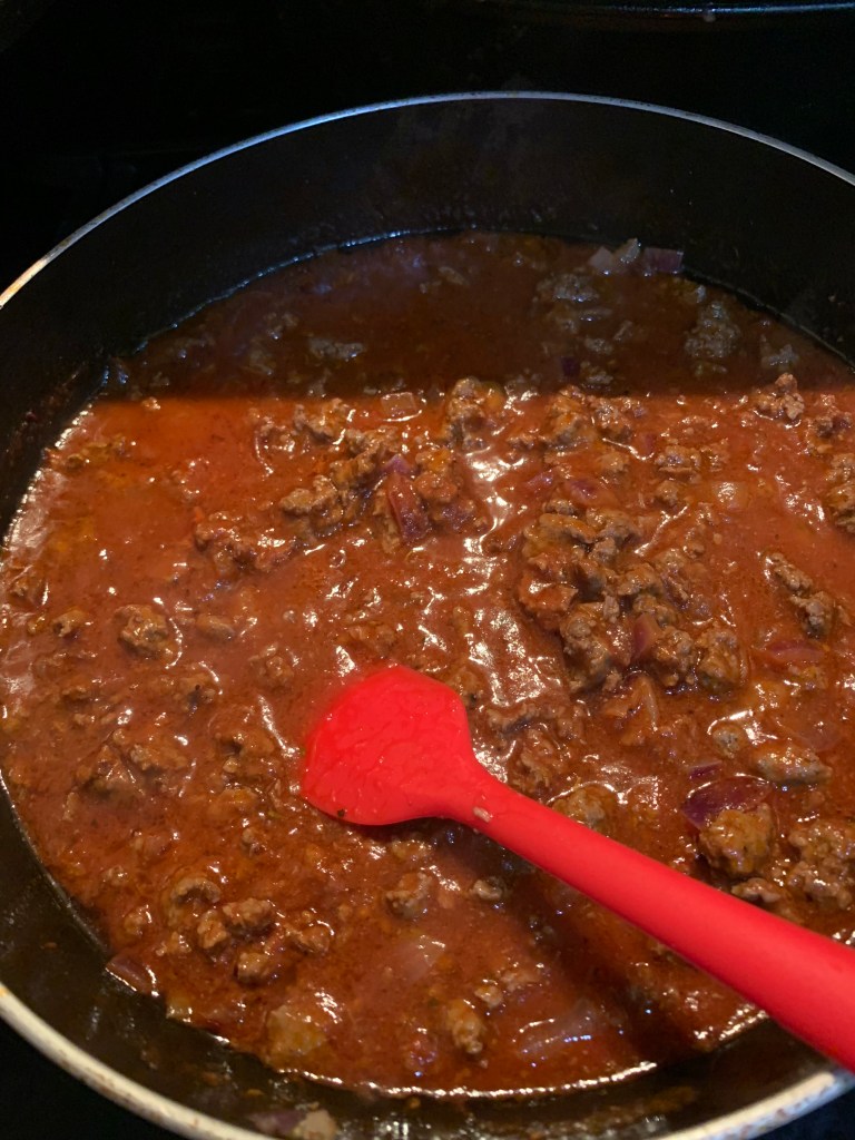 Add the cup of beef stock and the red wine vinegar; simmer the meat mixture uncovered for 20 minutes until the liquid has reduced. You should have a thickened meat mixture.