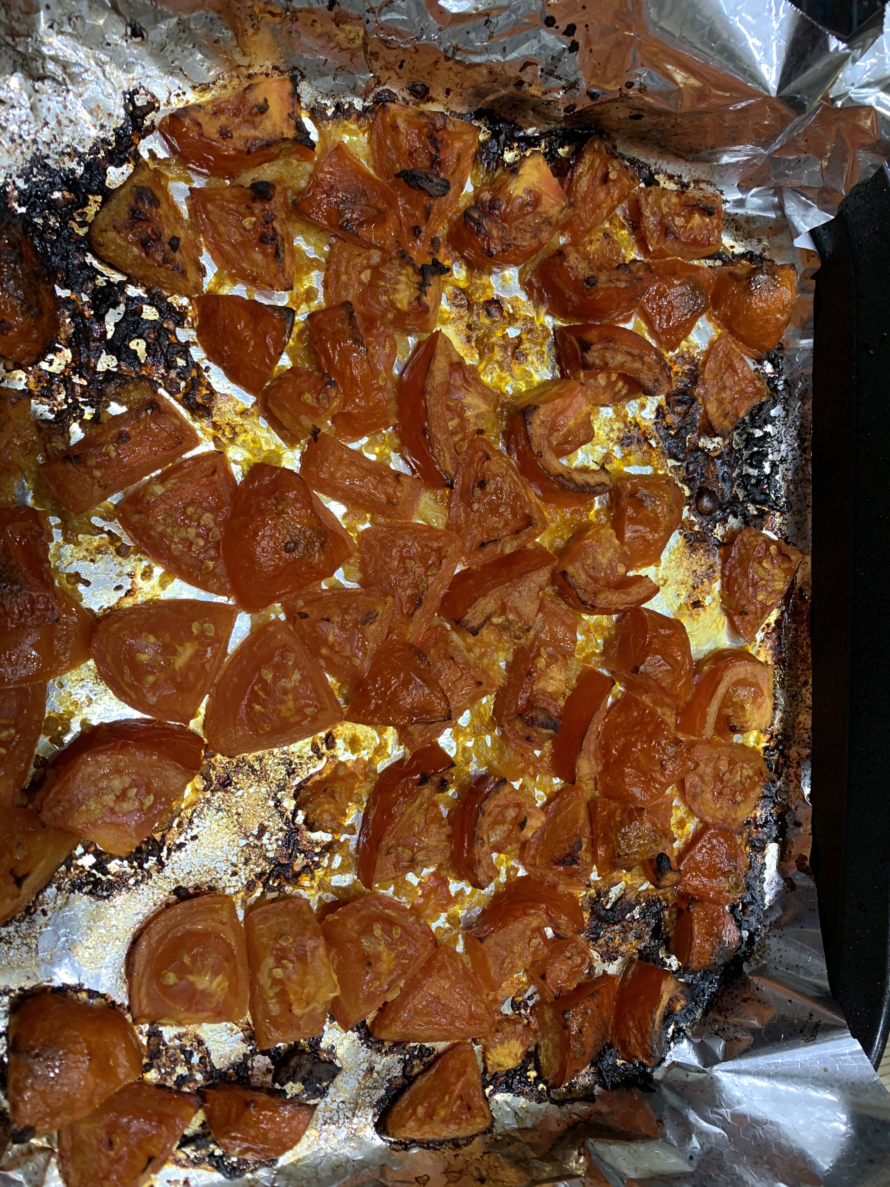 - Roast in the oven for approx. 20-25 minutes, until the skin on the tomatoes puckers (mine took 25 minutes).