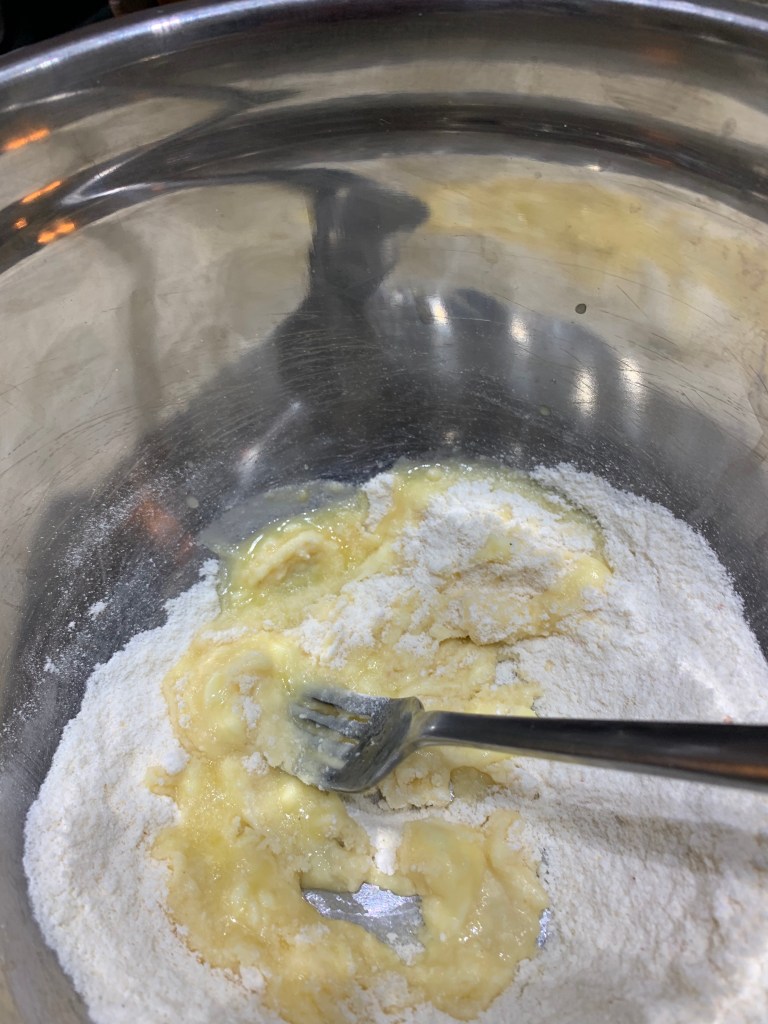 1) In a large mixing bowl, whisk flour, baking powder, onion and garlic powder.