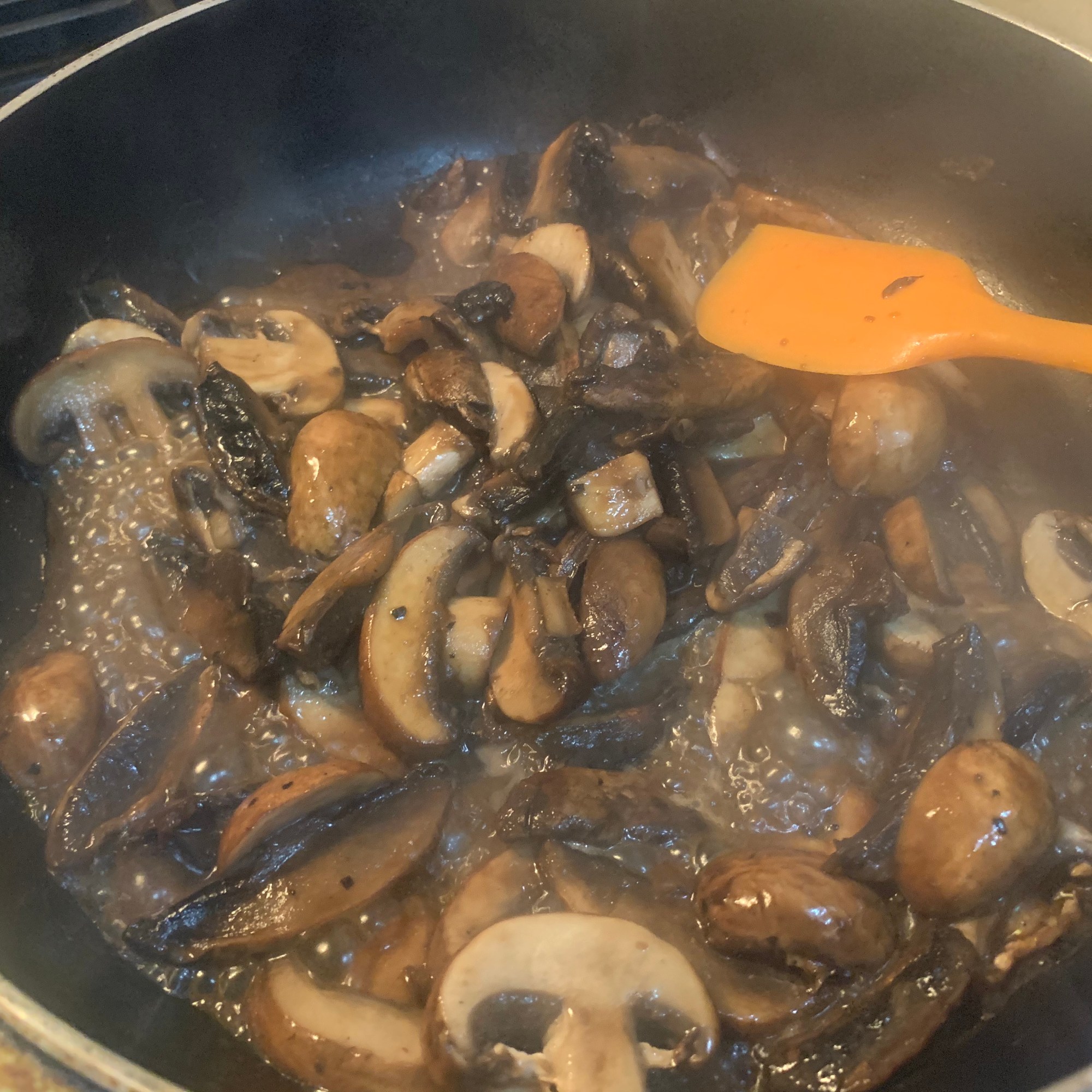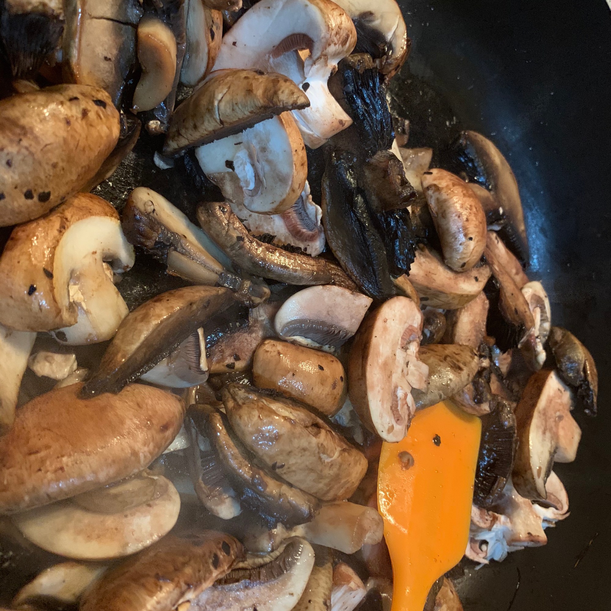 1) In a frying pan, fry your mushrooms in oil until soft; about 5 minutes.