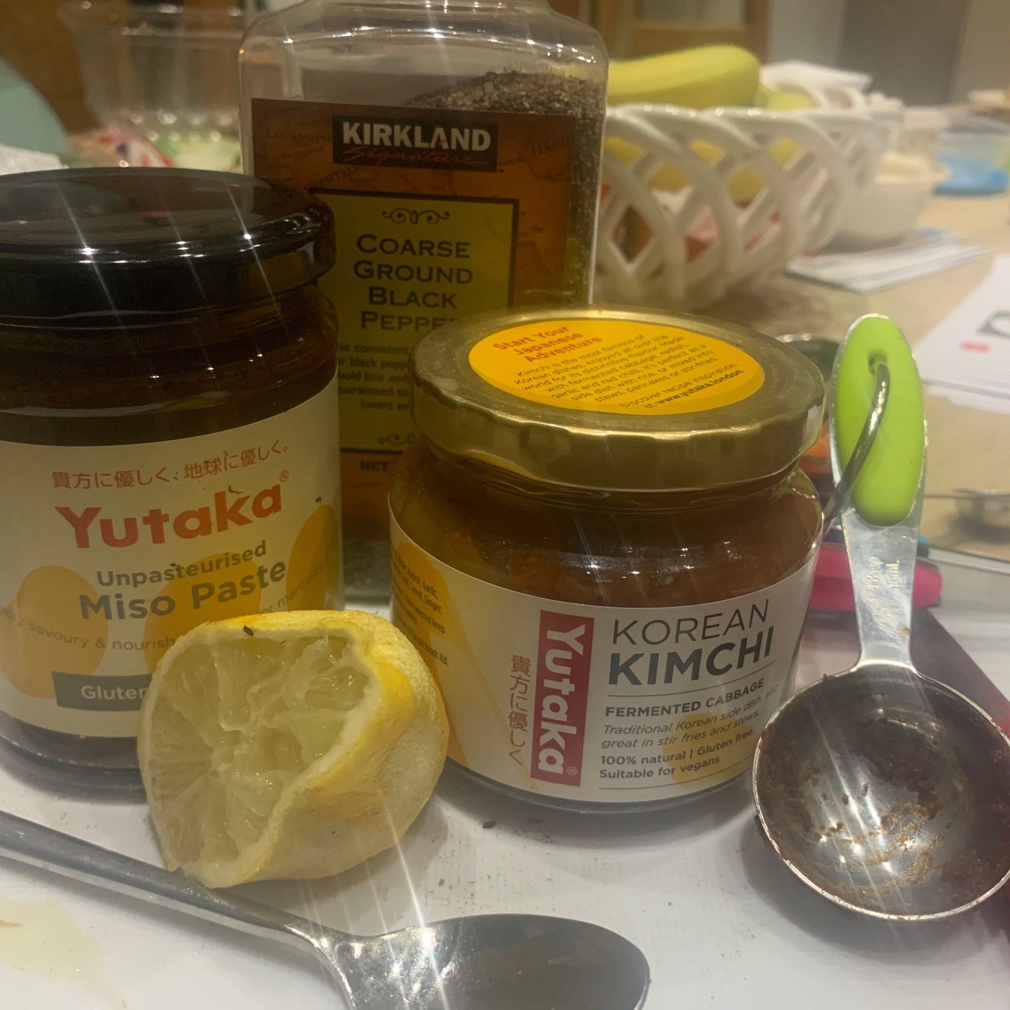 This is a healthy, easy and quick recipe taken from The Doctor’s Kitchen. A good recipe for the New Year! I wanted to try something new and miso is known to be good for your gut; it is low-carb so it’s great for my IBS. The original recipe served the mushrooms on toast, but I chose to serve mine with cauliflower rice and a side of organic and gluten-free Korean kimchi.
