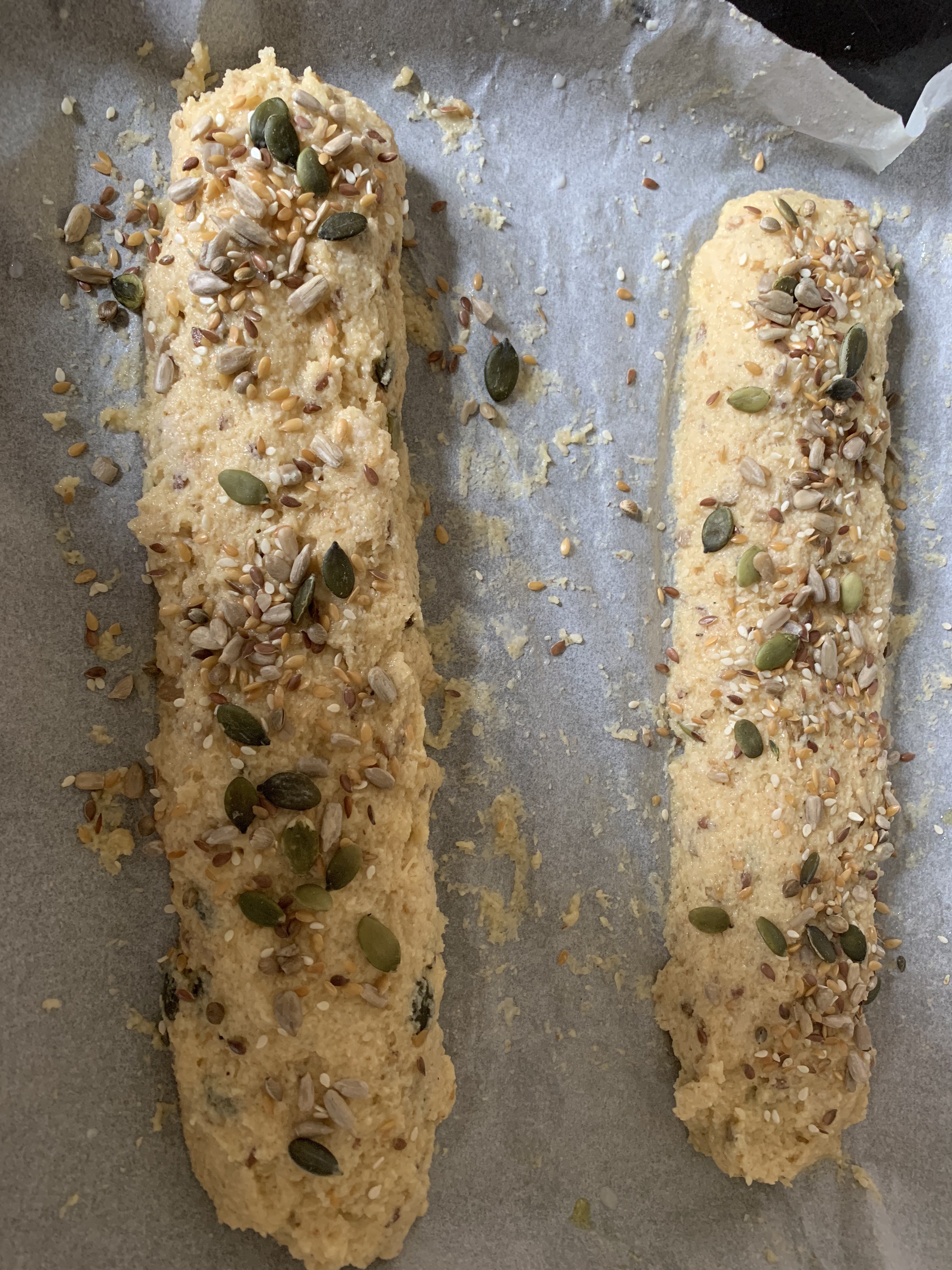 Each serving is a quarter of a baguette and provides 2.3g carbs, 8.1g protein, 1.4g fat, 1.2g fibre, 194kcal. I am making focaccia next!