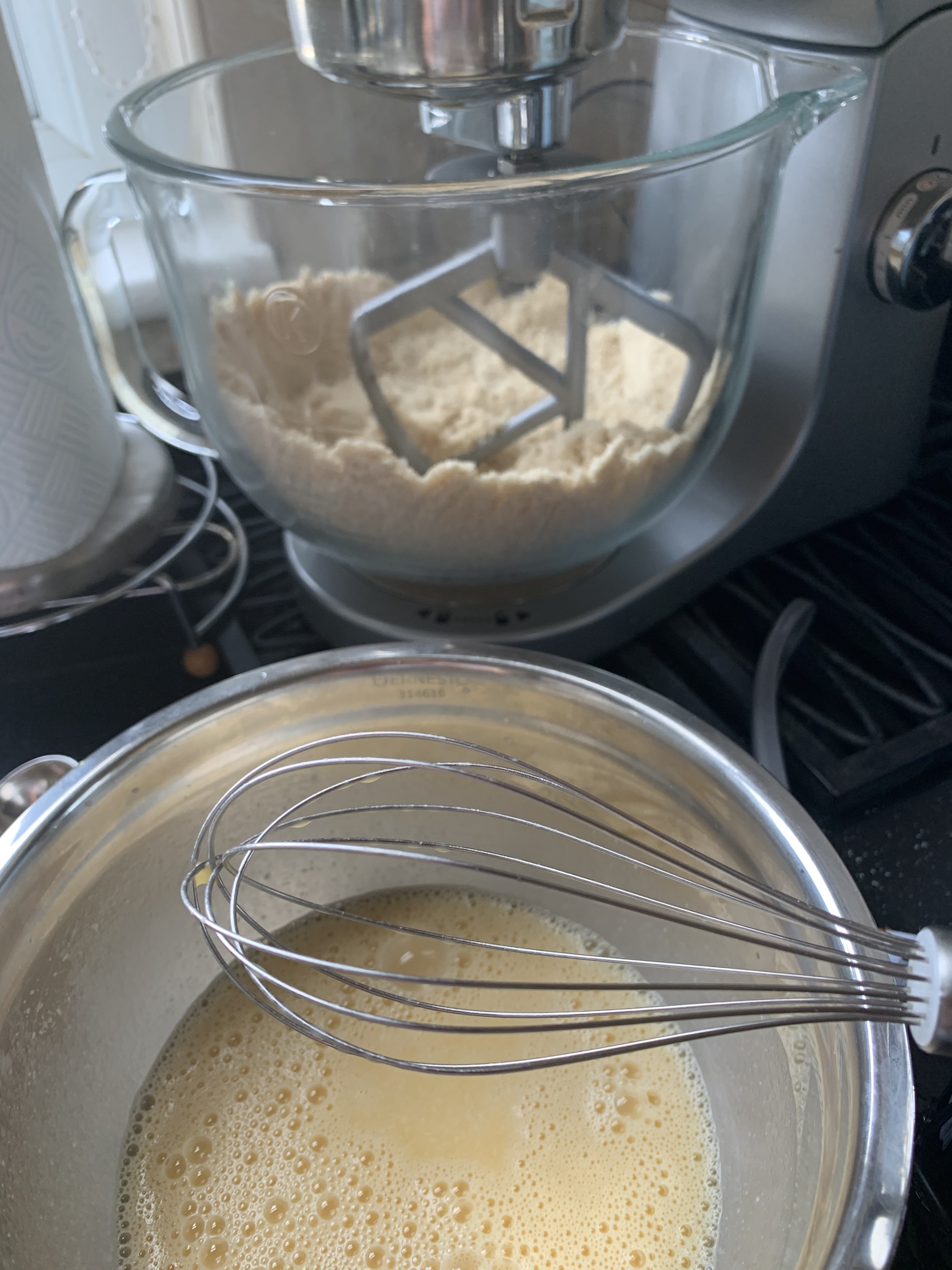 - In another bowl, whisk the eggs, melted butter or coconut oil (make sure the melted fat is at room temperature, and not hot otherwise it will cook the eggs), almond milk, and vanilla extract until combined.