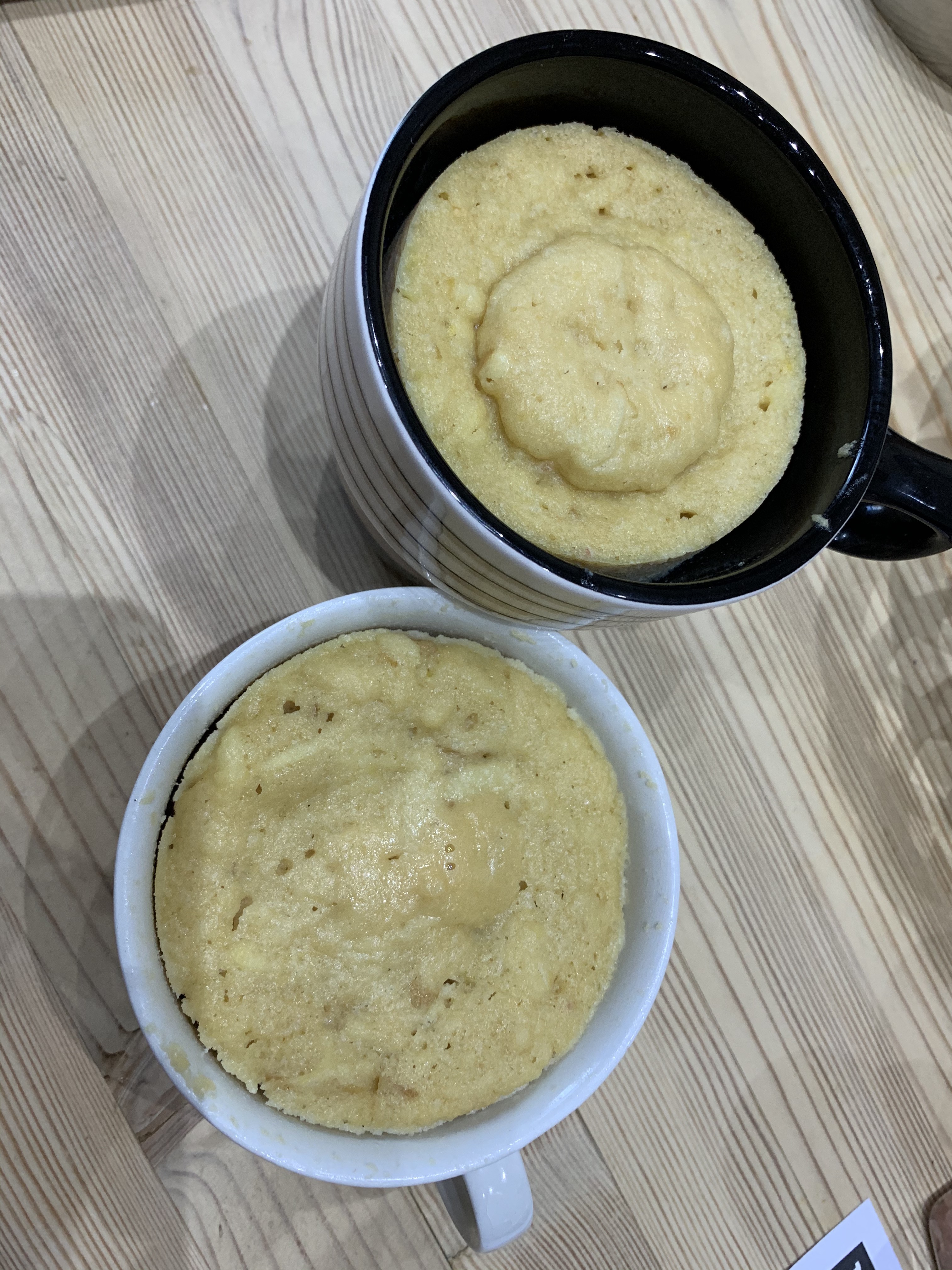 - Microwave for 1 minute on high if using the baking cups, 1 minute and 30 seconds if cooking both mugs. Check for doneness and if still liquid in the centre microwave for 15 second increments until just set. (I used the 15 second increments until set).