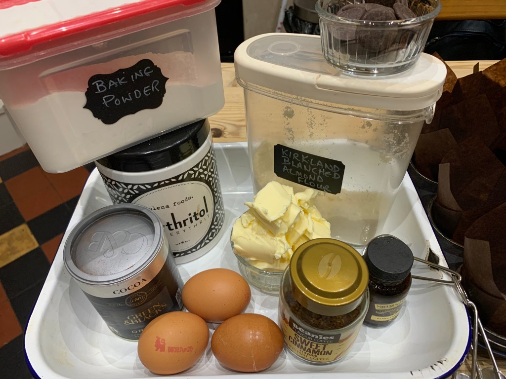 - In a medium mixing bowl, whisk almond flour, cocoa powder, baking powder, erythritol, and instant coffee. Make sure you whisk if fully so there are no lumps.