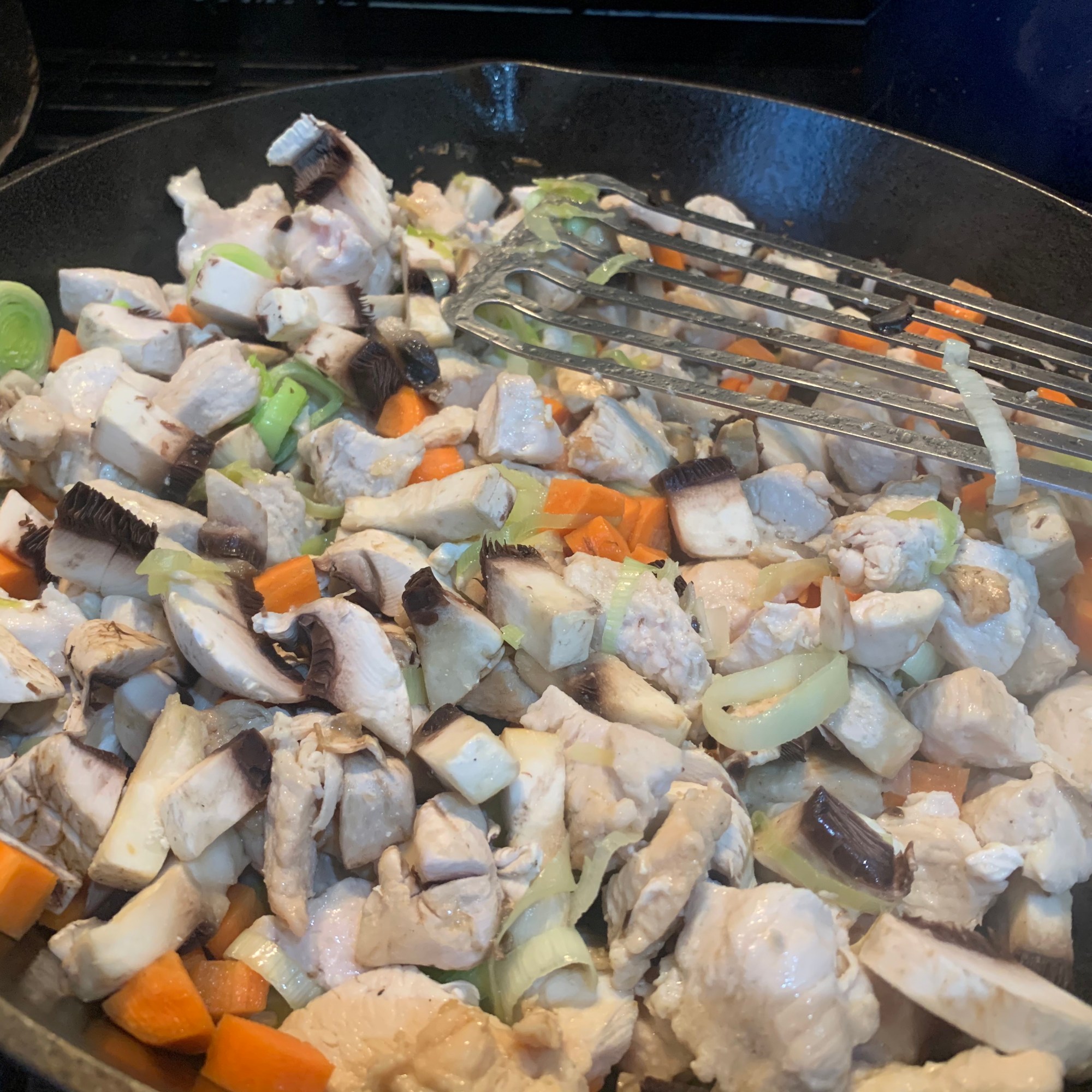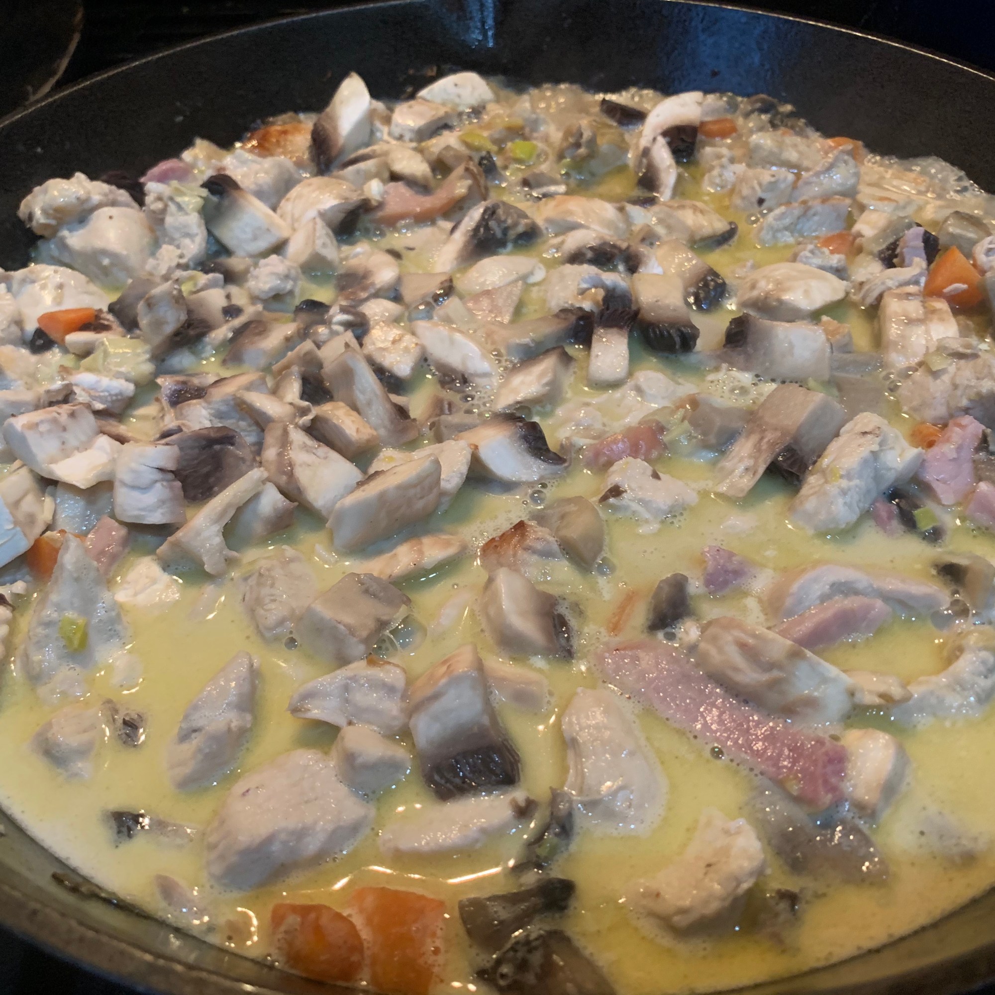 - Add the diced chicken to the sauce.
