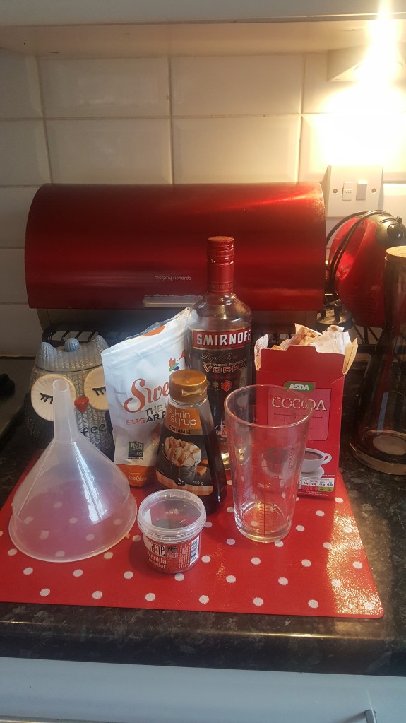 I wanted to make a sugar-free coffee liqueur. My plan was to have it on Christmas Eve with the Christmas cake I had made previously and frozen. (see recipe section). We ended up having it at the end of our Christmas dinner which we ate in the evening. The vanilla latte martini made from kahlua mixed with vanilla vodka and plant-based double cream with the cake and a range of keto chocolate truffles provided the perfect ending to the meal.