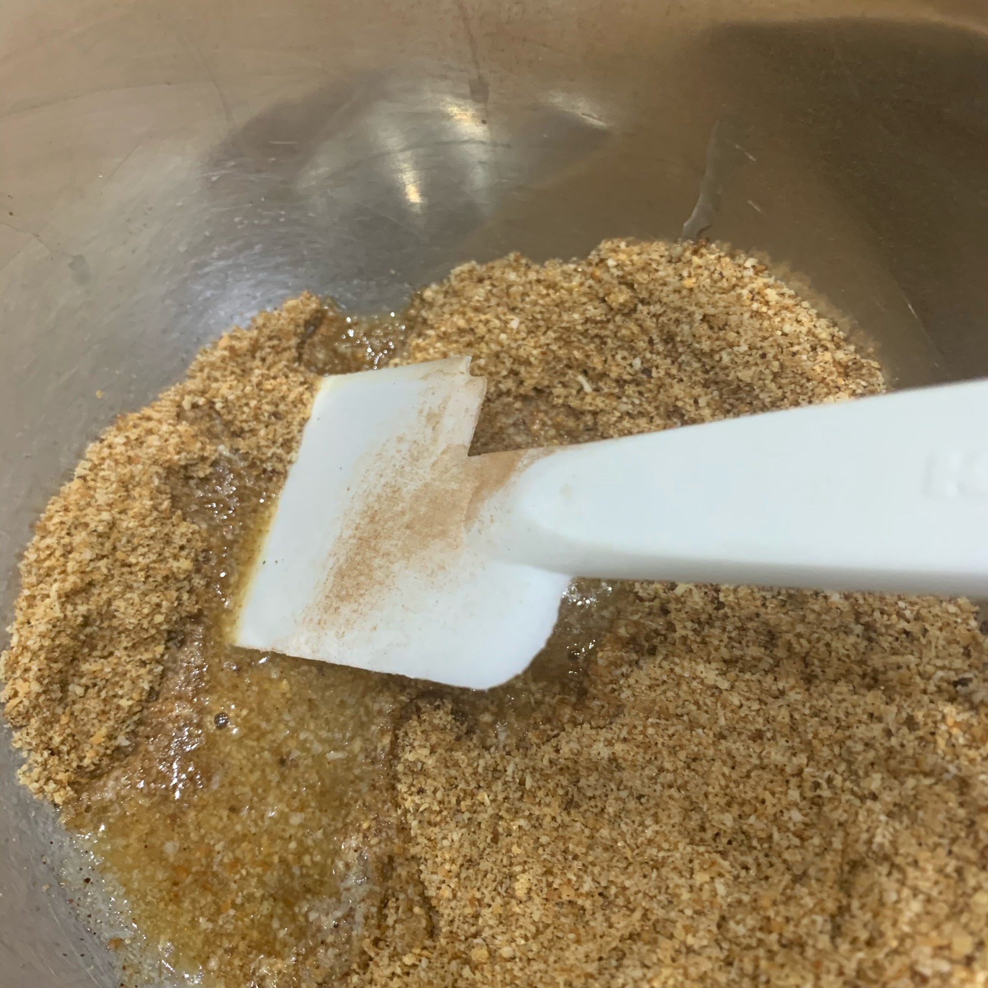- Put the toasted flour in a bowl, then mix in the erythritol, cinnamon, and salt.