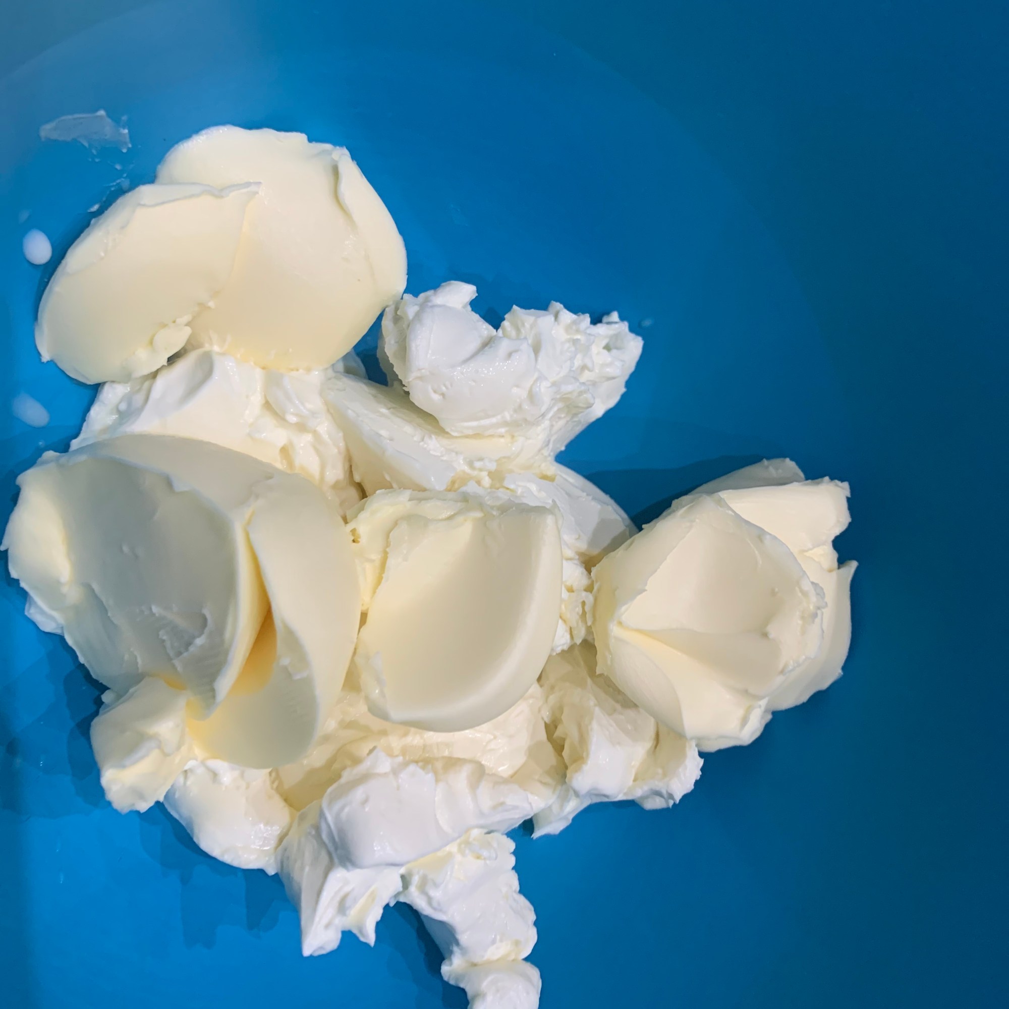 - In another bowl using an electric mixer, add the cream cheese and butter, and whip until combined.