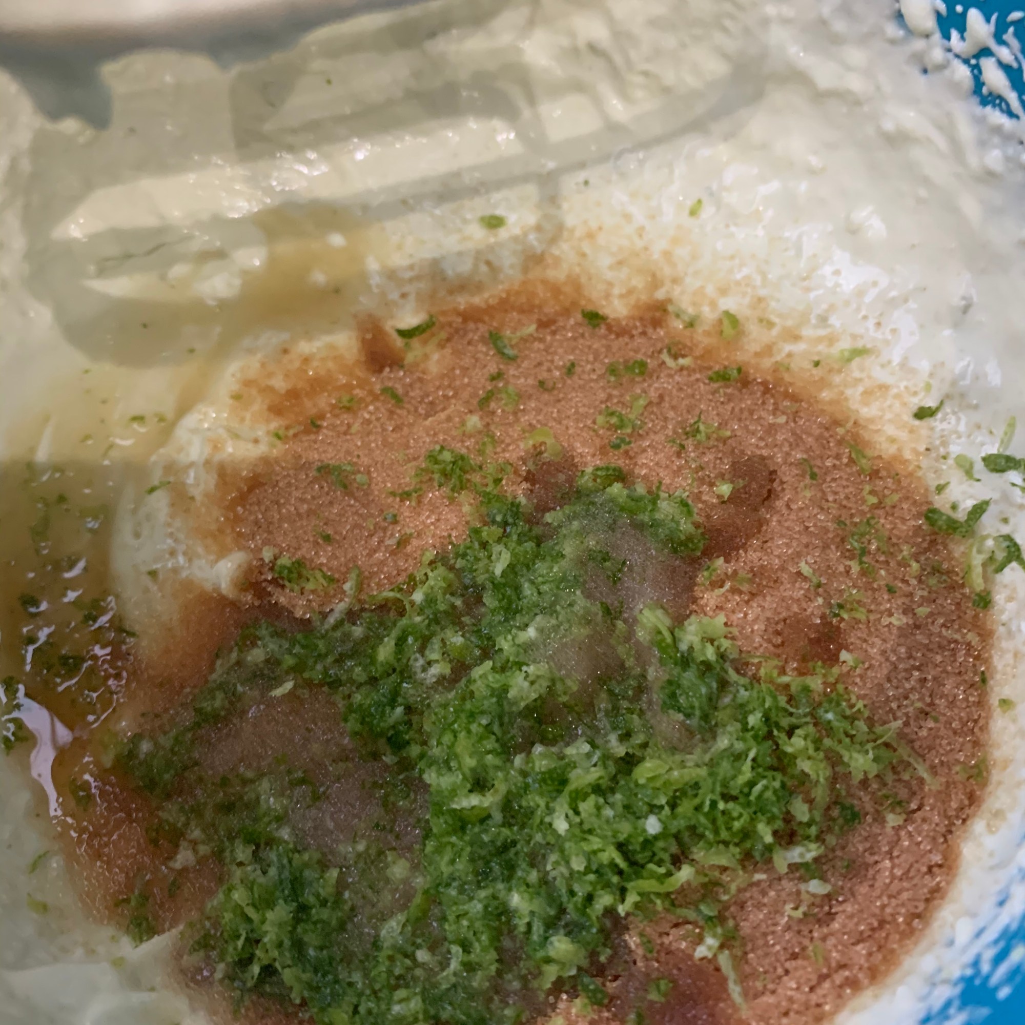 - Then add the lime zest, lime juice, and erythritol to taste. Limes can vary in flavour, start with the lower amount and add until you reach your desired taste. Note: flavours will continue to develop whilst chilling.