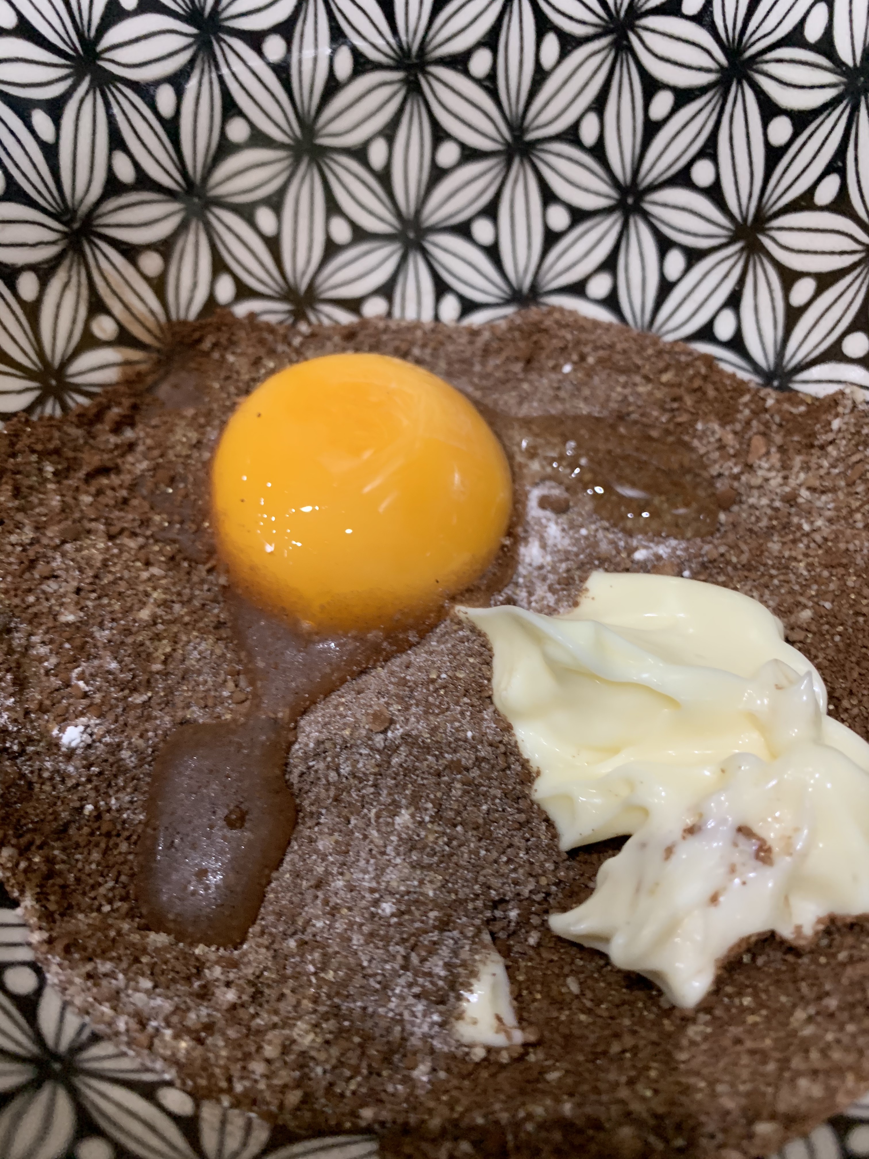 - Sift the almond flour and cocoa powder, ensure there are no lumps. Add all the dry ingredients into a mug, mix completely.