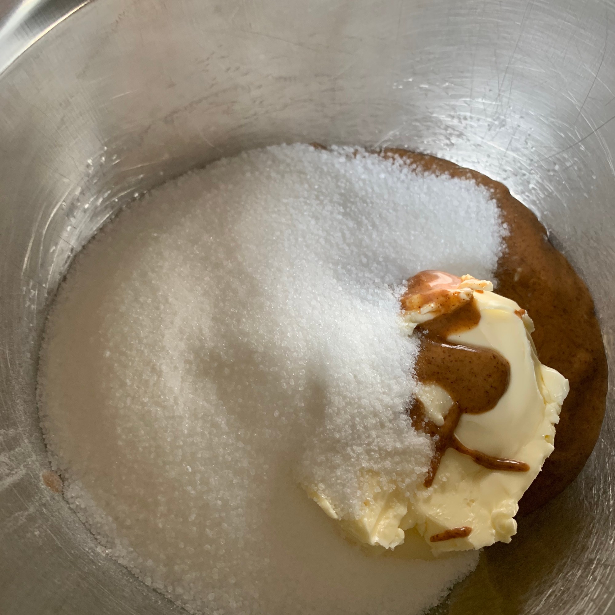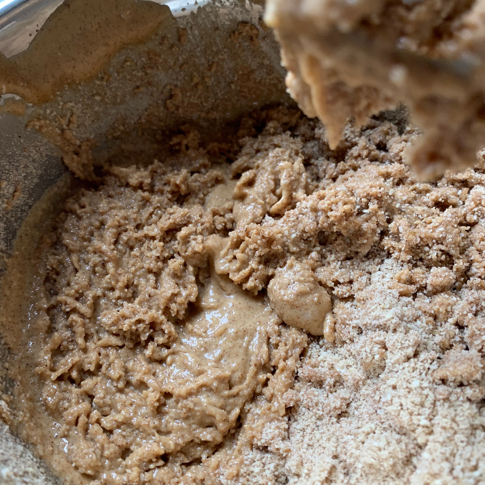 - Next, in another bowl combine, butter, almond butter, and sweetener until smooth.