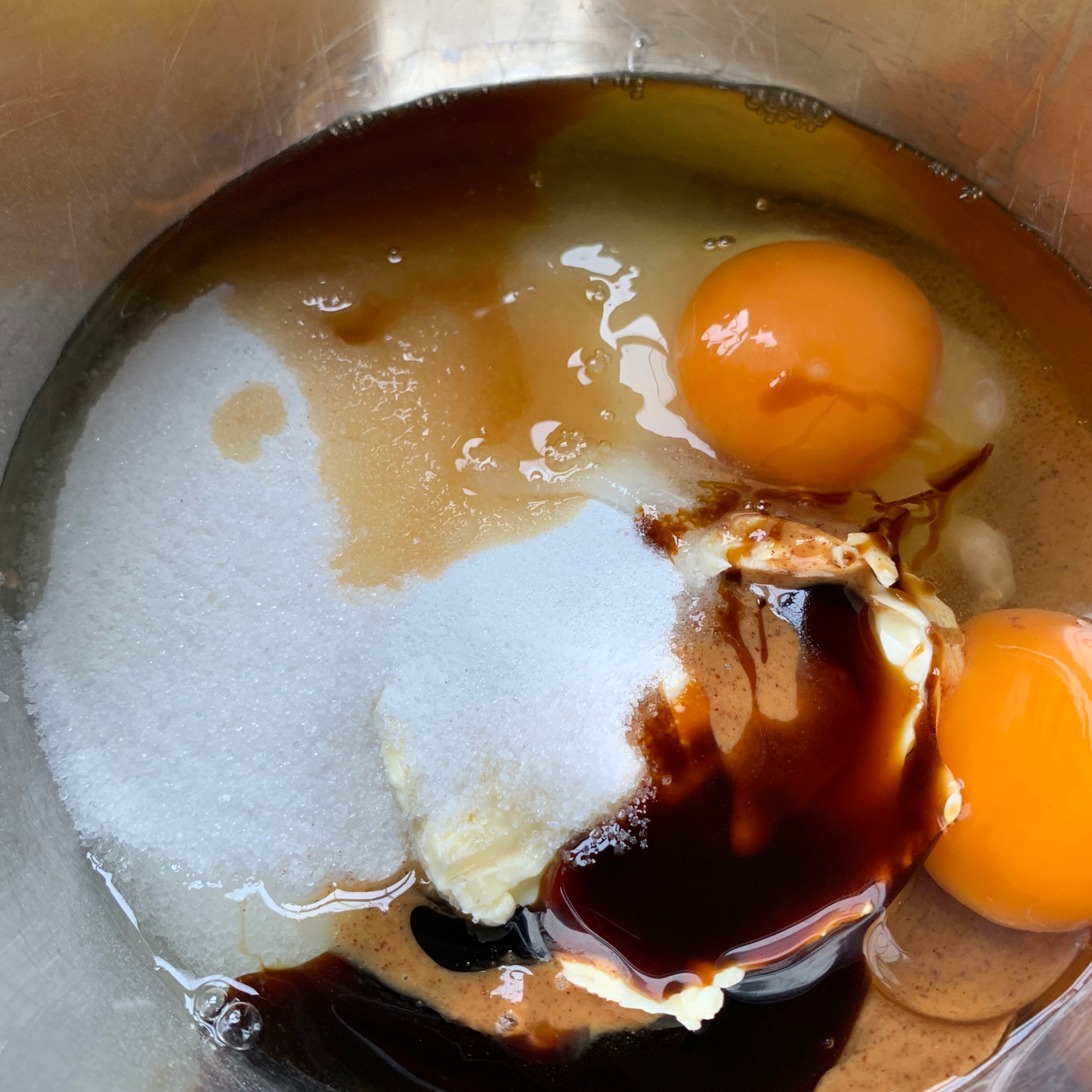 - Add the eggs, Yacon syrup, and vanilla extract to the butter mixture, beat until well combined.