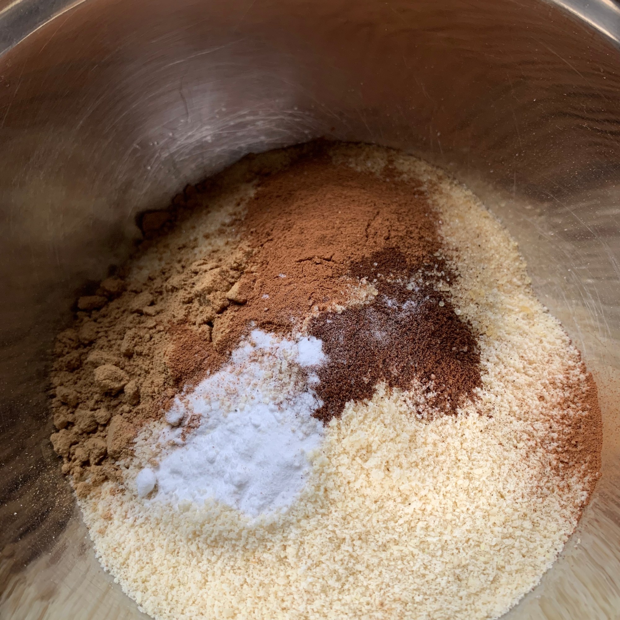 - In a bowl, mix together the dry ingredients: almond flour, gelatin, ginger, cinnamon, baking soda, and cloves.
