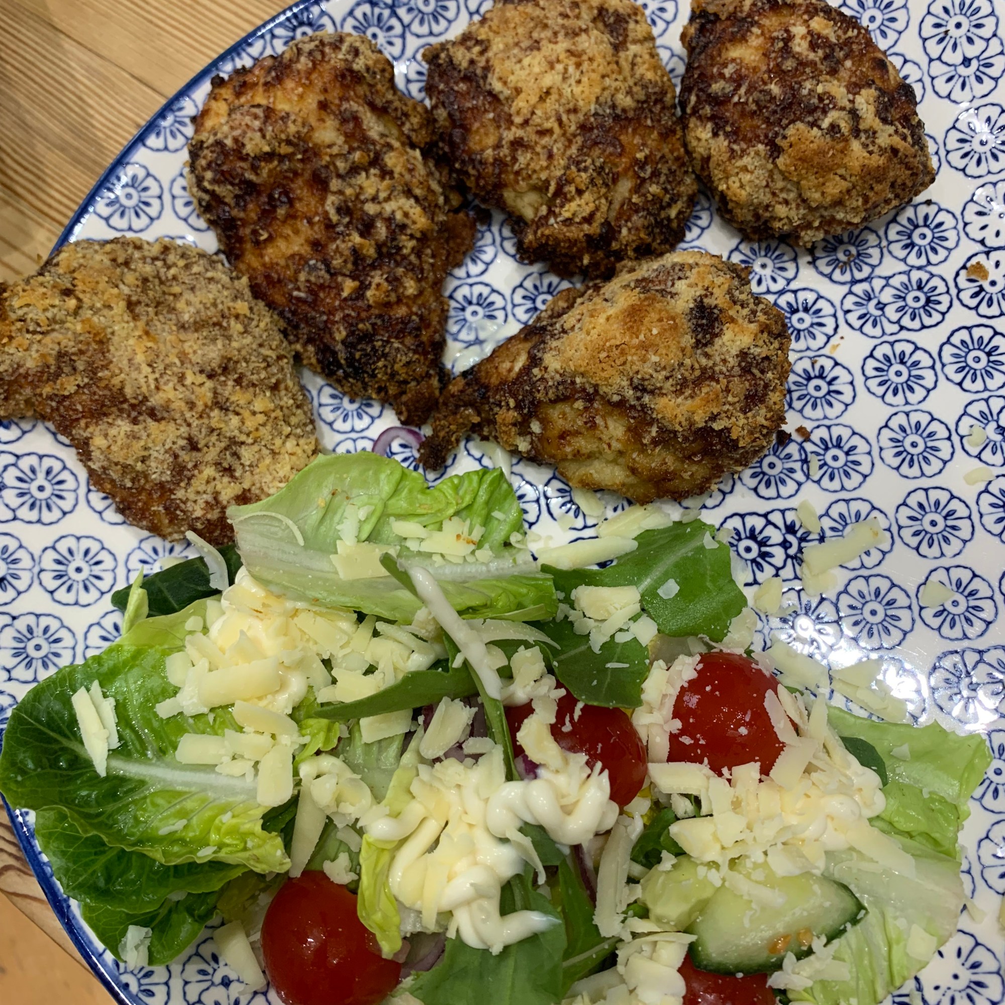 I’ve never had fried chicken here or in America as I’m gluten- and dairy-free but I’ve always wanted to try it. When I saw this recipe I knew I needed to make it. I used an air fryer to cook it and sprayed it before cooking with a little oil to help crisp the coating. The flavour was good from all the spices. The almond and parmesan coating was slightly crisp and the chicken was tender. I’m guessing if I deep-fried it then the coating would be crisper. However, I really enjoyed biting through the cheesy coating into the spicy tender chicken. This is a good recipe however you cook it. I will be making this again. Try it and enjoy.