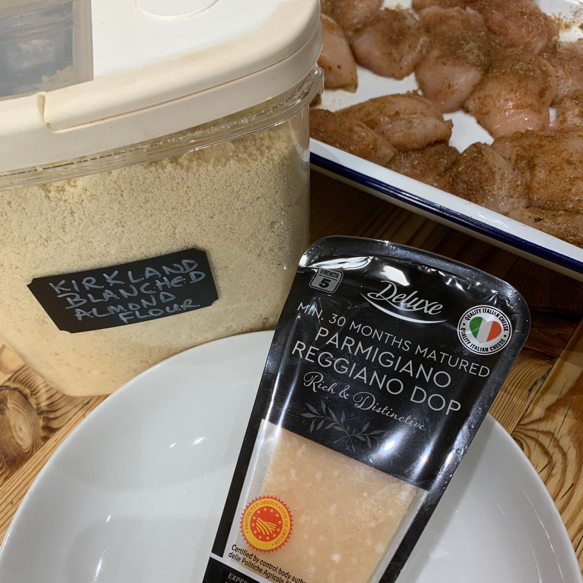 - Whisk the eggs and cream together. In a separate bowl, combine the almond flour and powdered parmesan, then pour onto a tray ready to bread the chicken.