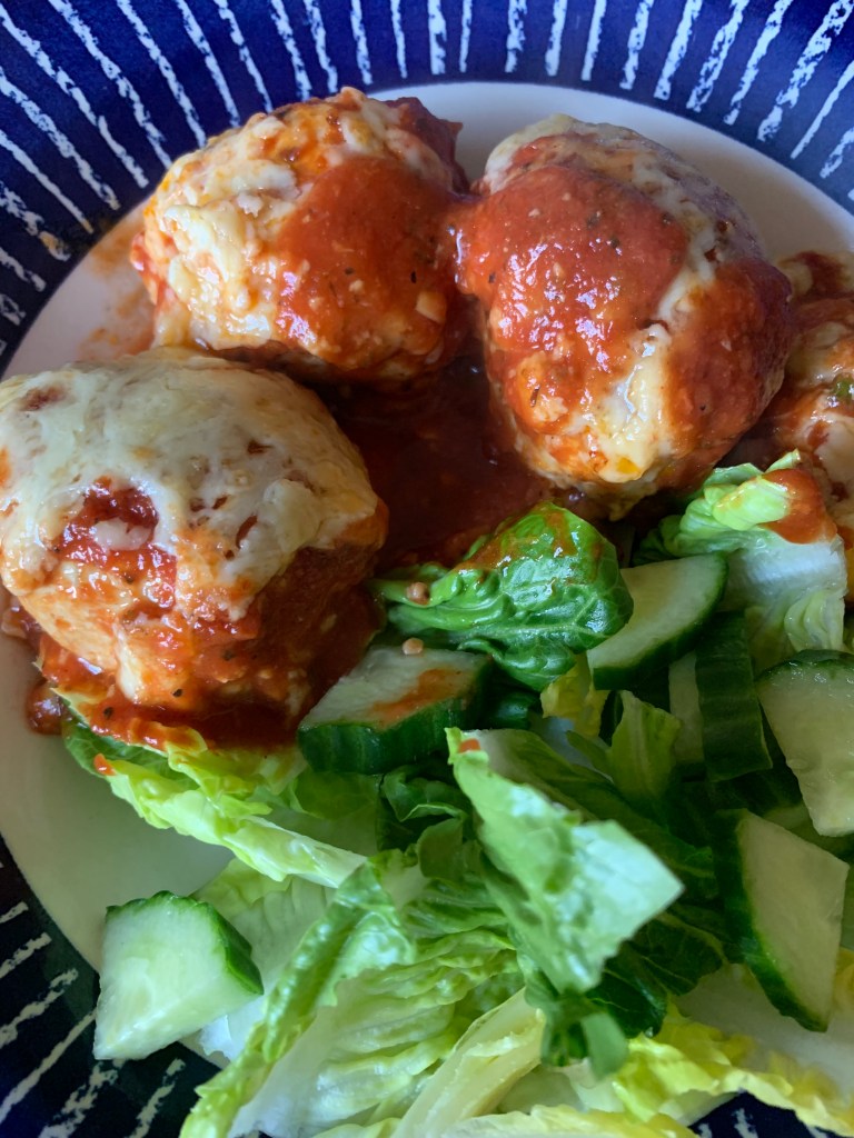I love Italian food and this recipe certainly met my needs for cheesy tomato flavours. It was very easy to make and cook. The recipe is accurate in terms of method. I ended up making 9 meatballs as it was easier to divide up. You can cut down a bit on the marinara sauce if the dish isn’t too big. The meatballs have a perfect texture and the flavour of herby meatball with cheese and tomato is delicious. I like meatballs to be coated in sauce rather than swamped. I had three with salad which was filling. I kept two so I could have meatball sandwiches for lunches. I use this low carb hot dog roll which has 2.7g Carbs. These sandwiches are seriously good. Regardless of the confused nutritional information, this recipe is delicious and well worth making.
