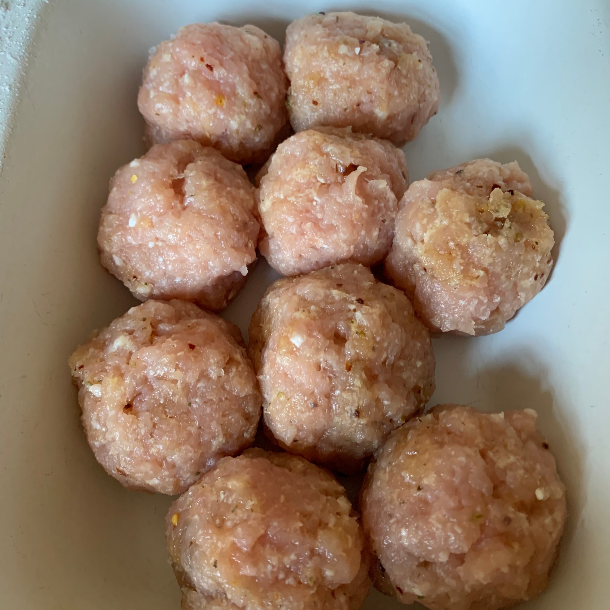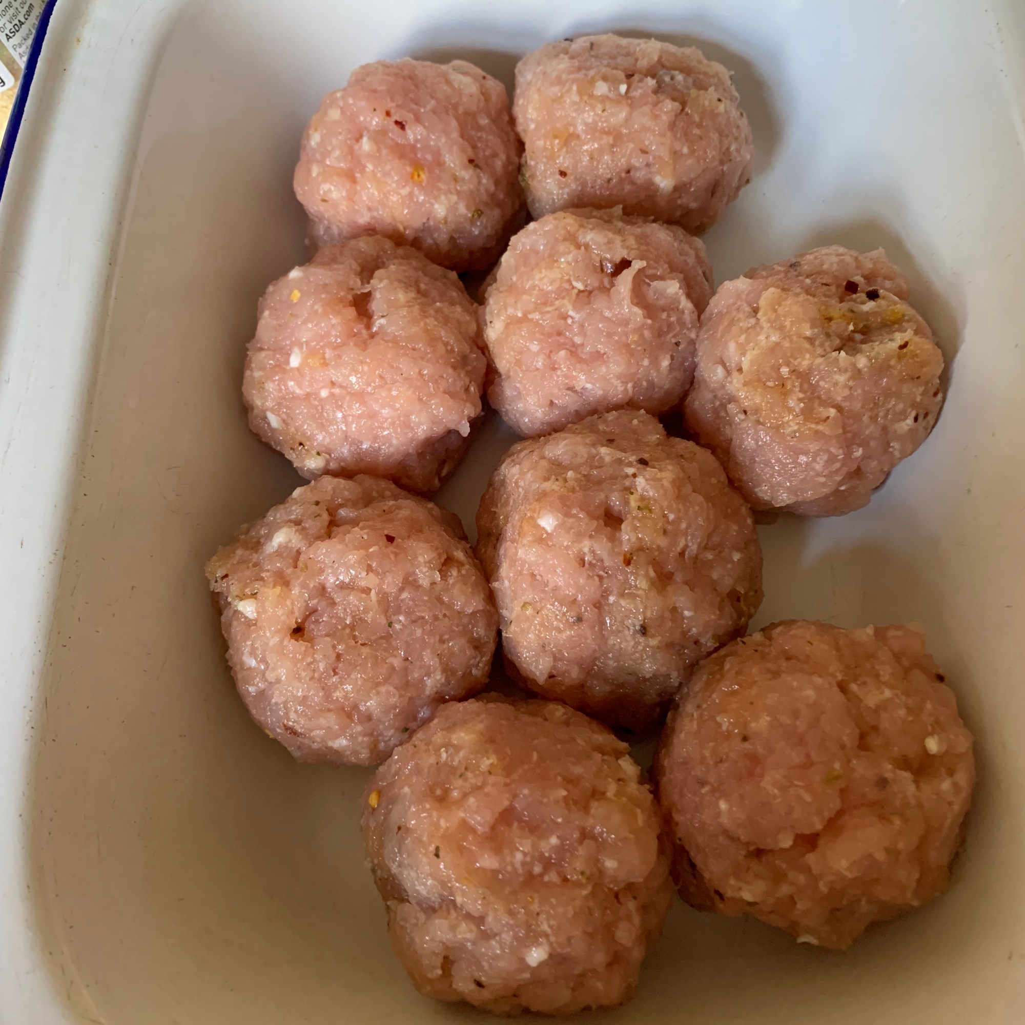 - Form the meatballs, you should be able to make around 7 meatballs the size of a large golf ball. Once formed, place into the freezer for 20 minutes.