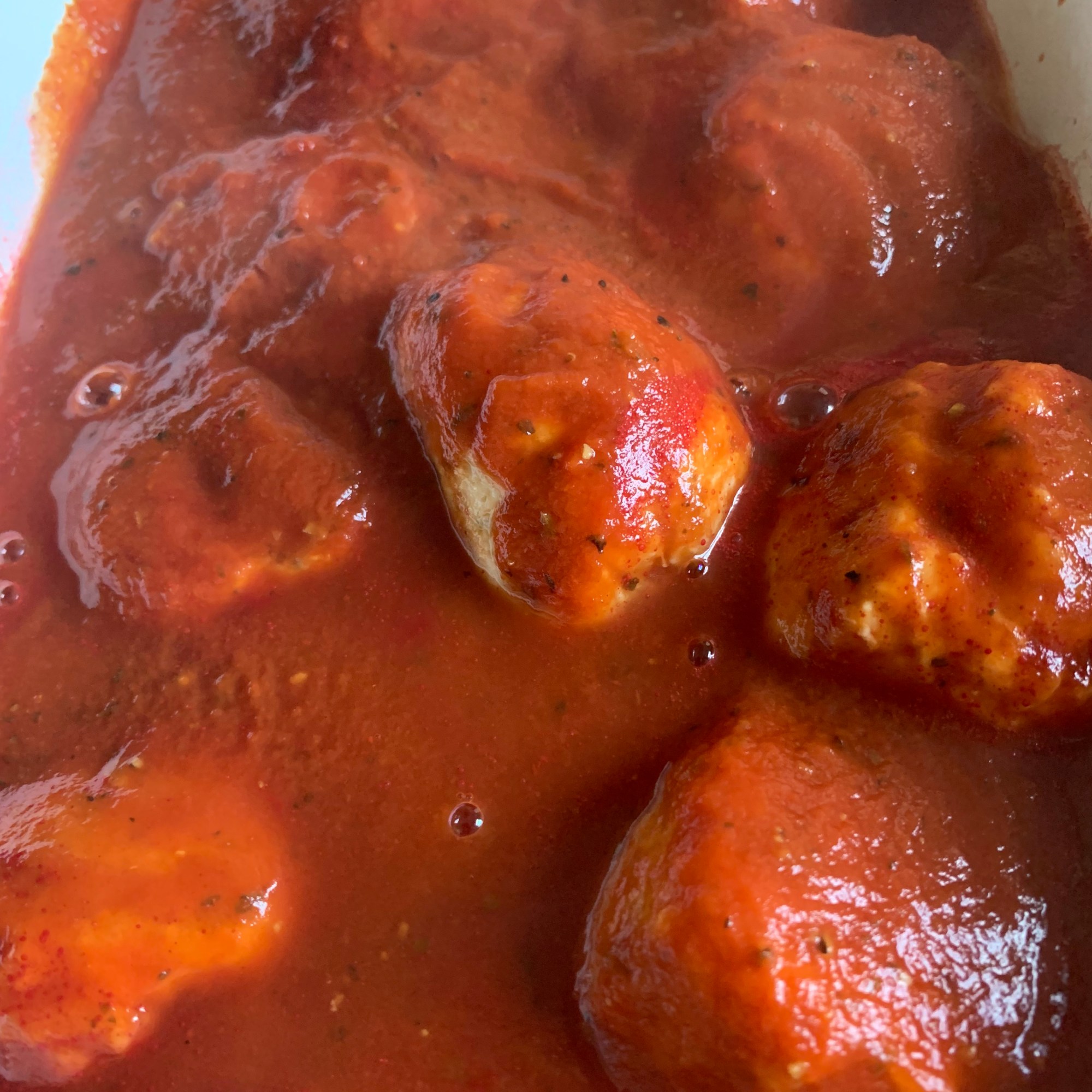 - Next, heat a tbsp olive oil in a large pan. Once hot, add the meatballs to the pan and cook until well browned, about 1-2 minutes. Flip and repeat, then place immediately into the marinara sauce. Gently simmer the meatballs for 20 minutes, ensure they are well covered and submerged in the sauce.