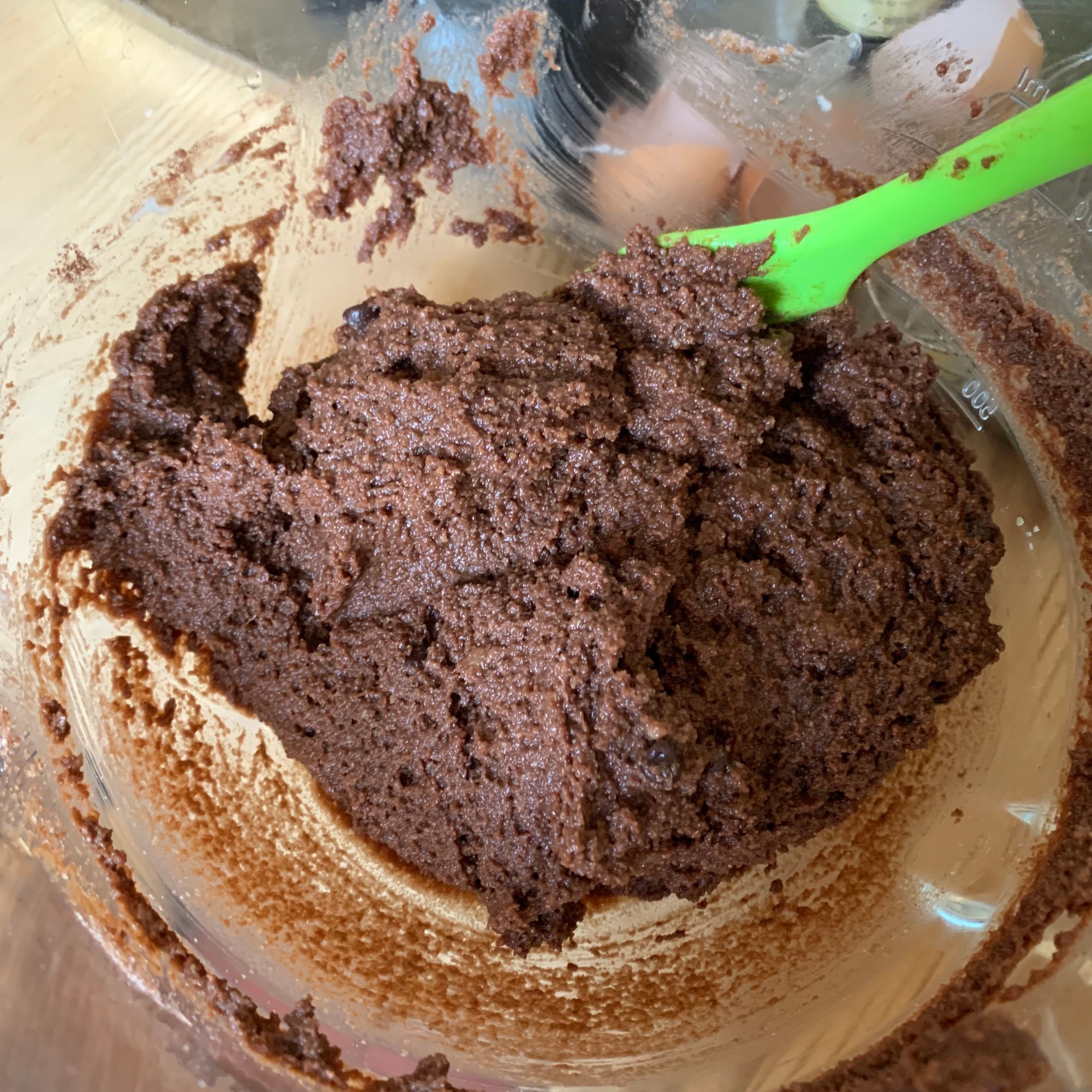 - Add the wet ingredients, to the dry ingredients, mix with a hand mixer until completely incorporated.