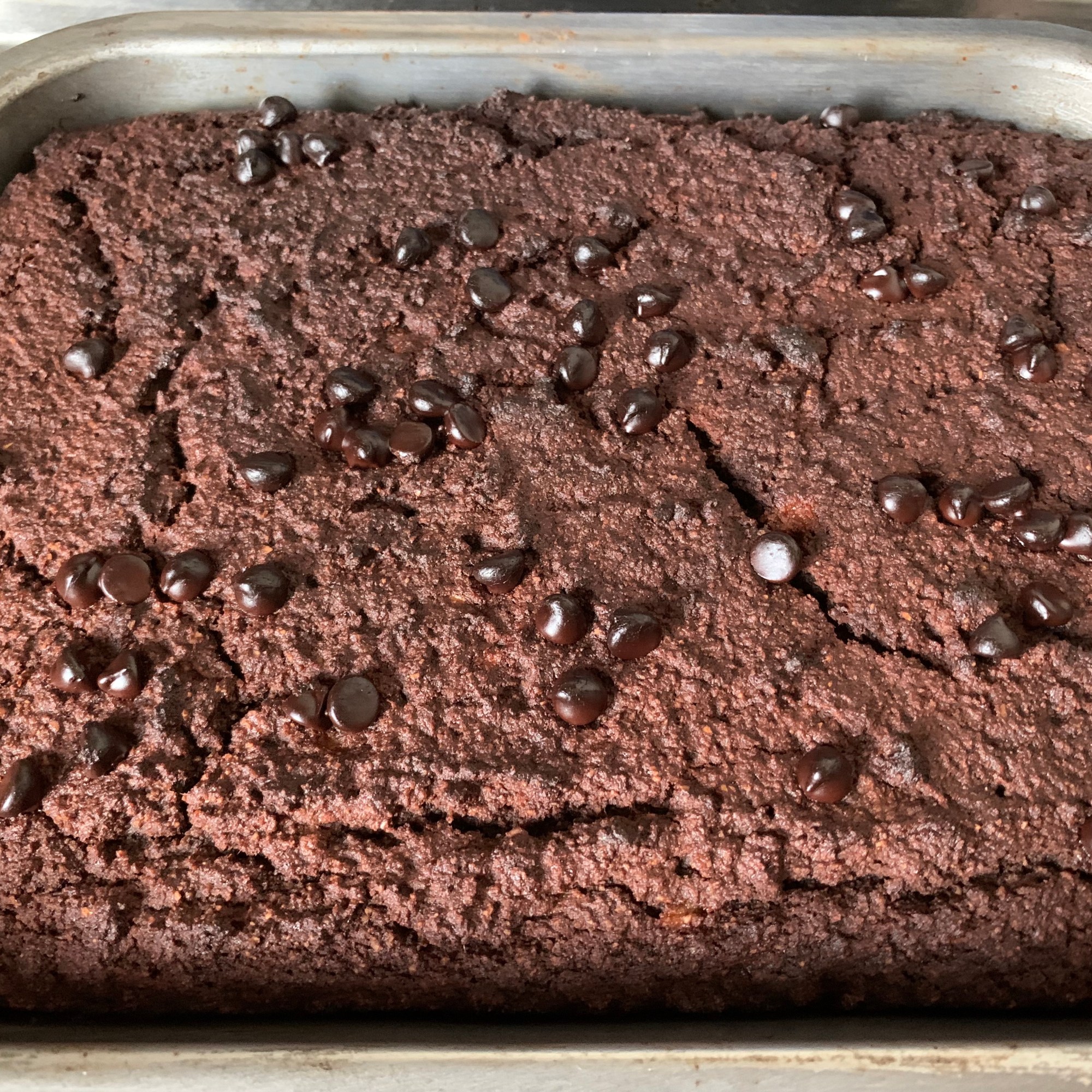 - Next, spoon the batter evenly around the brownie pan. With the back of the spoon, gently distribute the batters evenly as you can in the pan – it is very thick, & will fill-in as it cooks. Add the rest of the nuts if using and all of the chocolate to the top, barely pressing them into the batter. (It spread well but I dropped spoonfuls into the prepared tin. I added Lily’s chocolate drops but didn’t press them in).