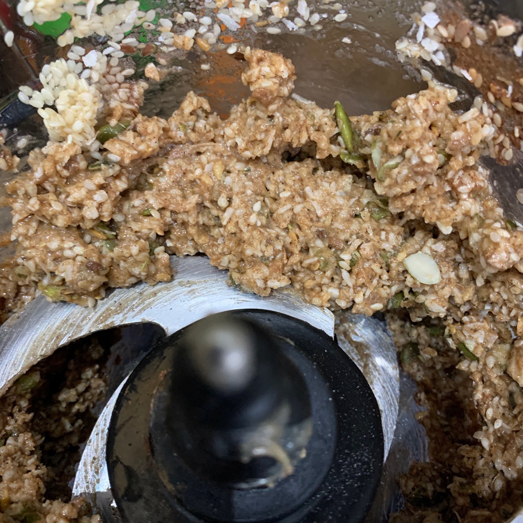- In a food processor, add all the ingredients, and mix until a sticky dough forms.
