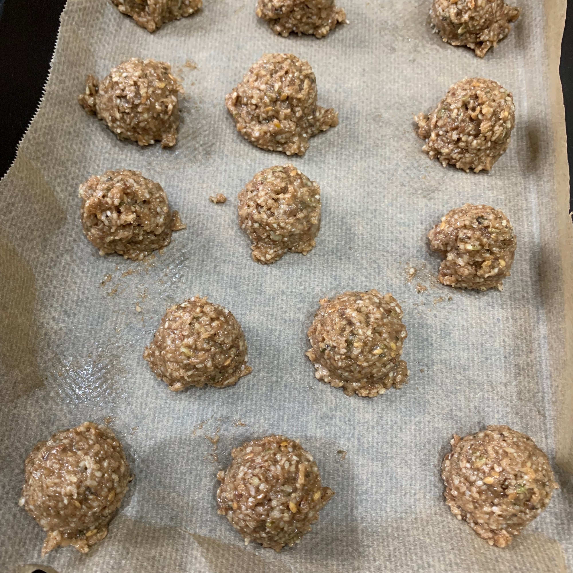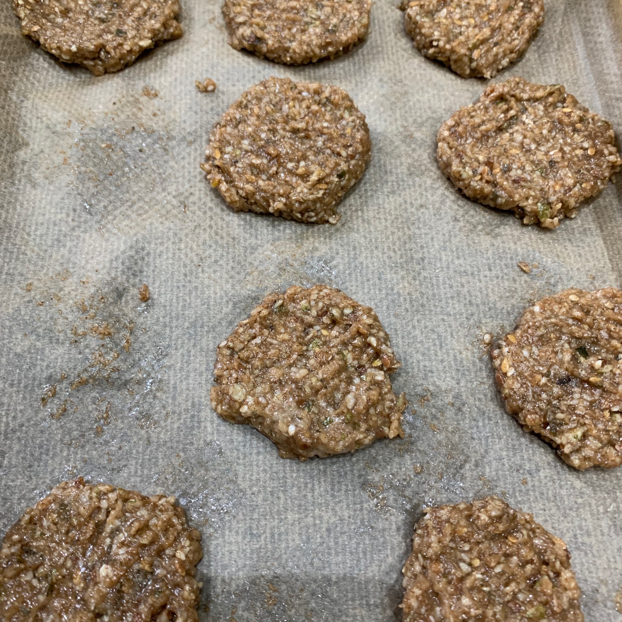 - Roll the dough into 30g balls and press into cookies. Around 7 cm in diameter and 1 cm thick.