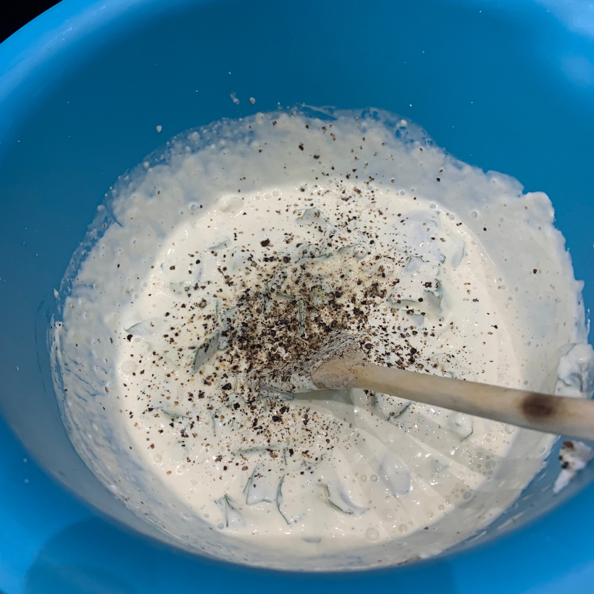 - 3/4 cup Greek yogurt (I used 1/4 cup greek yoghurt, and 1/2 cup plant-based double cream instead)
