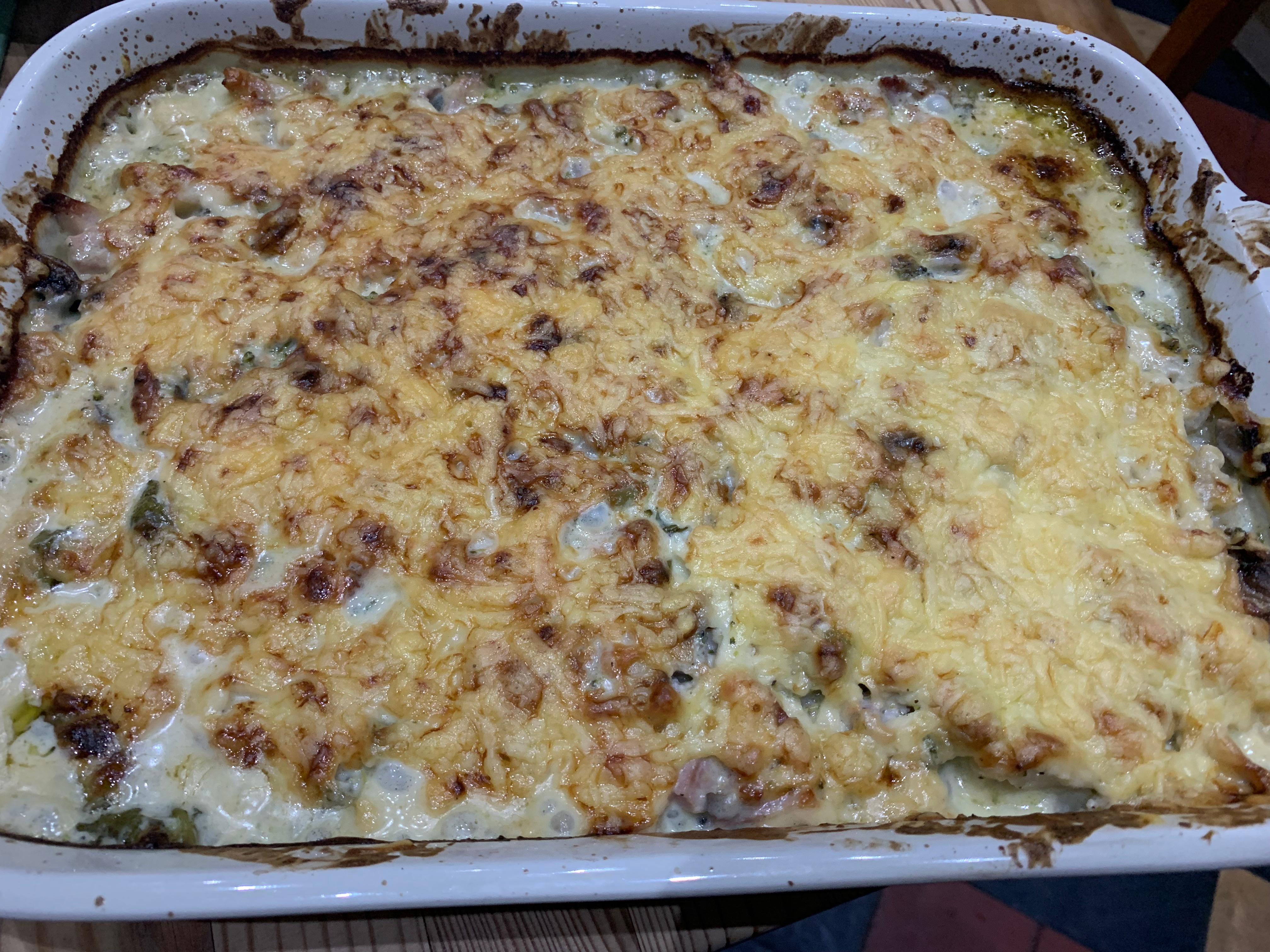 We had cooked a ham and needed a recipe to use up quite a lot of leftovers. This recipe seemed to meet what we needed. It turned out to be rich, creamy and cheesy – I mean what else do you want from a recipe. For a meal using leftover ham, cream cheese, an opened carton of plant-based double cream, slightly wilted spring onions and frozen broccoli and cauliflower it was one of the best ever. I’m not a fan of frozen broccoli and cauliflower and we only keep it in for emergencies which somehow never happen. We loved this meal! It’s quite rich so I had mine with mixed salad and it was perfect. I highly recommend the you make it and its a straight forward recipe. Try it!