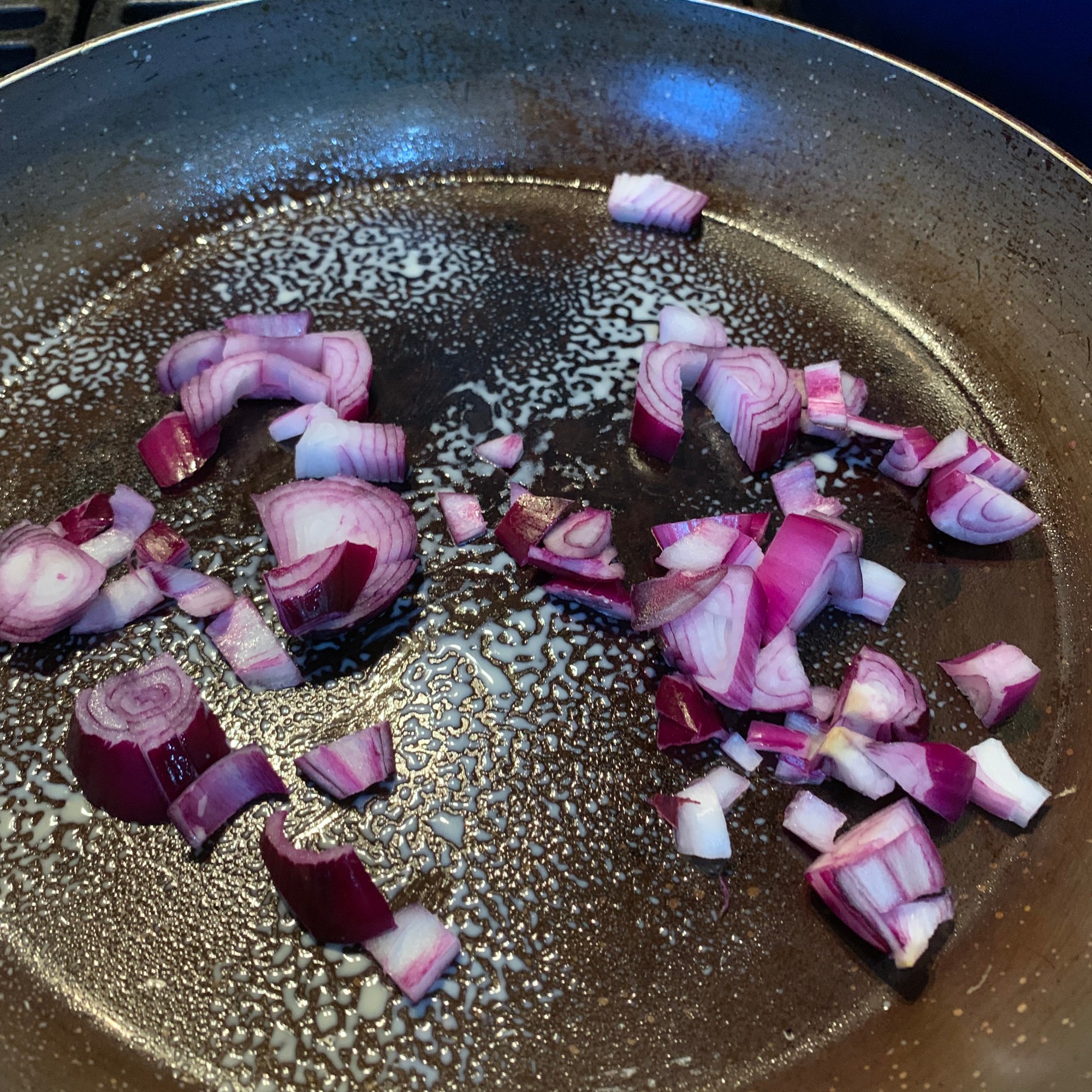 - Add the remaining 1 tbsp of butter to the pan and fry the onions for 3 minutes on a medium heat until golden and softened.