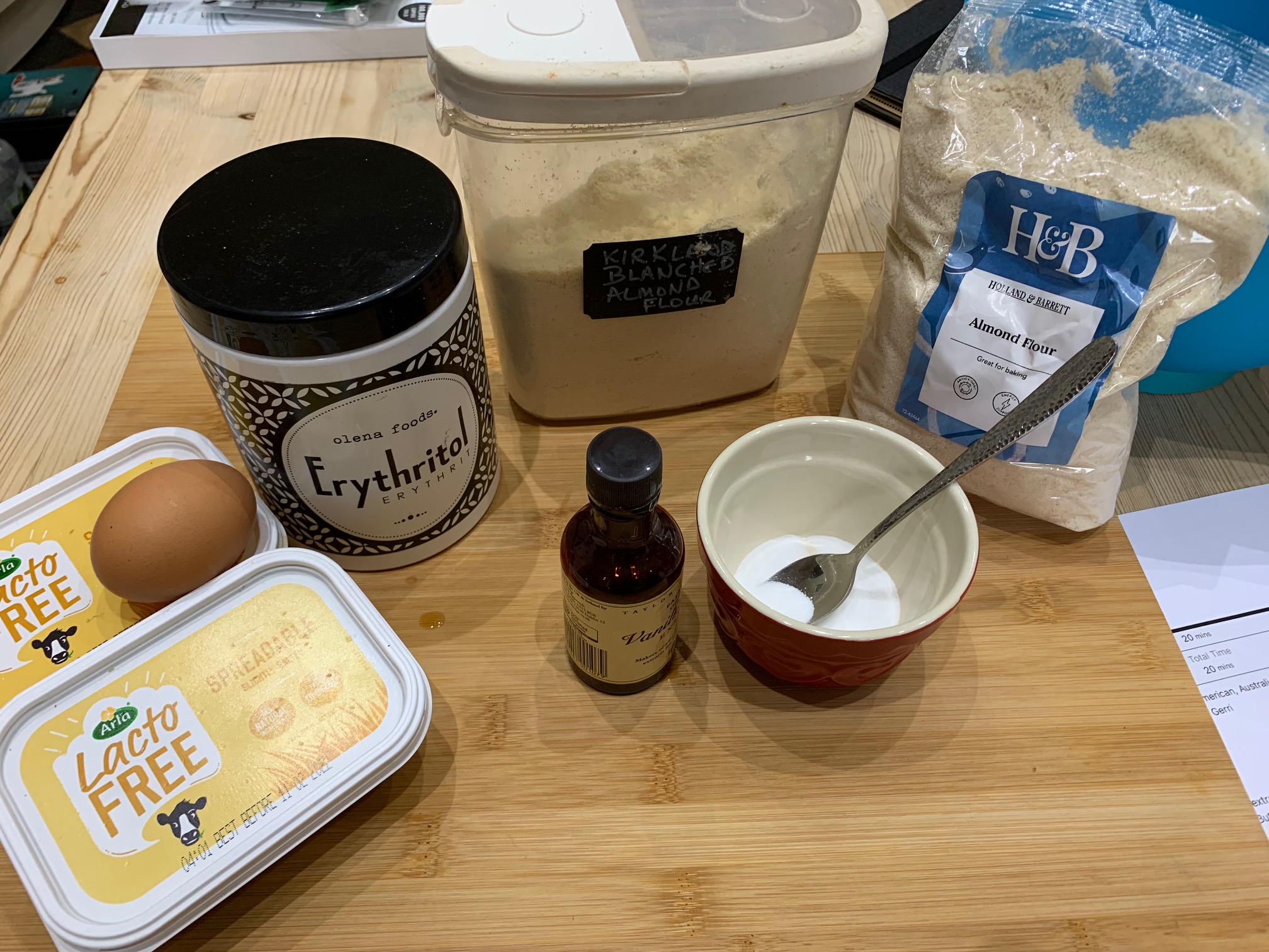 • In a bowl, mix together the almond flour, erythritol, salt and vanilla extract.
