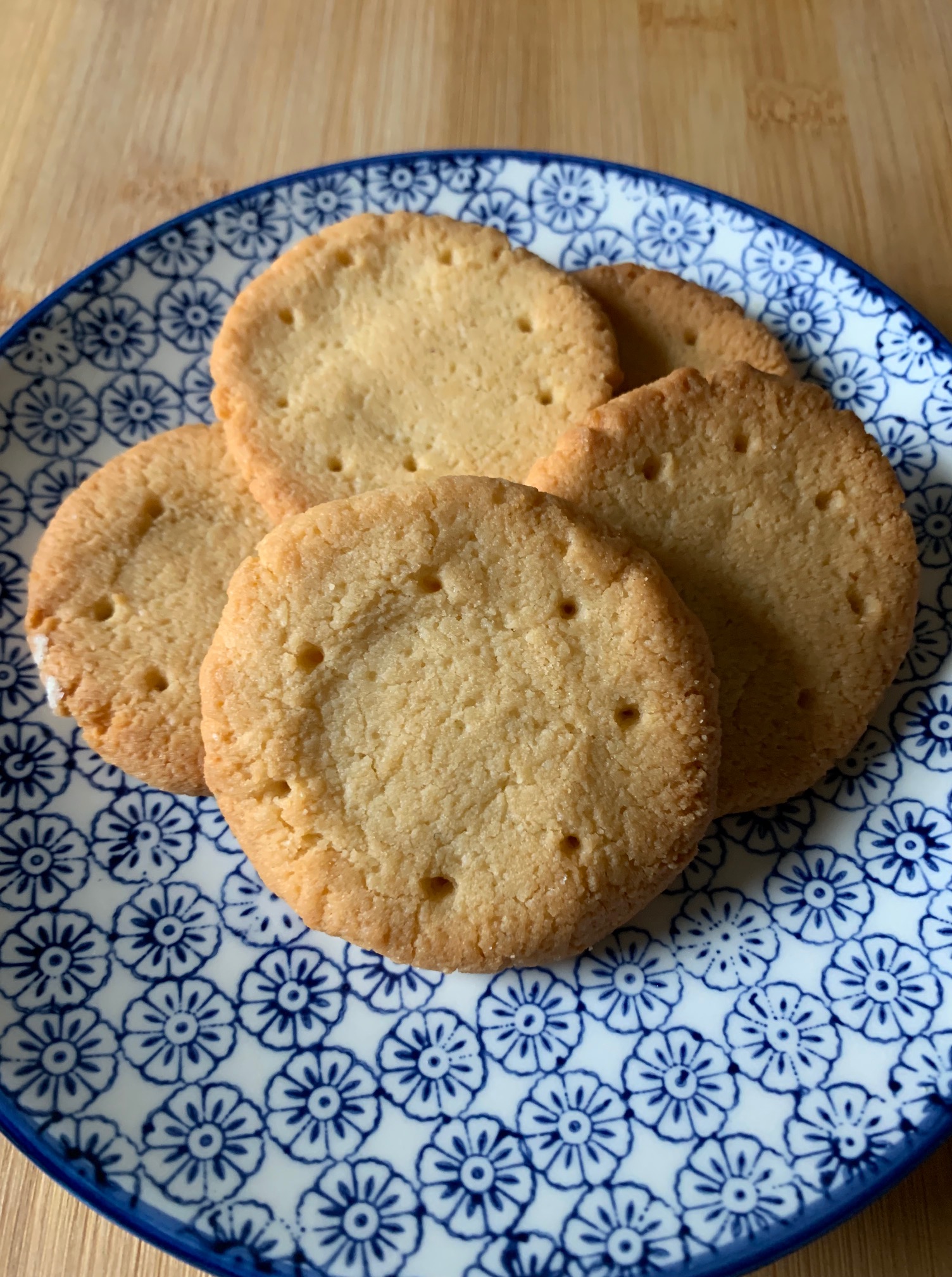 I wanted a biscuit (cookie) that could be dunked in a cup of tea or coffee. For people who are not British, this is a time-honoured habit where you dip your biscuit into your mug of hot drink quickly then get it into your mouth without half the biscuit falling into your drink, creating sludge. Not all biscuits are created equally, so you need a firm biscuit such as digestives, rich tea, gingernuts or a hearty shortbread. I think dunking is in the British psyche although I’m of Irish ancestry. My family requested a dunking biscuit for comfort reasons as quite a few have had Covid recently. I researched biscuits and this shortbread recipe seemed hearty and buttery. It’s both easy and accurate. I didn’t wear gloves to roll the balls. Please admire the plastic measuring spoons which made the process of portioning the biscuit dough much easier. I got them in a Christmas cracker and laid claim to them quickly before others did. I got over 20 biscuits out of the dough. These stand up well to dunking and are melt in the mouth. This recipe is a keeper and each biscuit is only 1 net carb. Try them and enjoy!