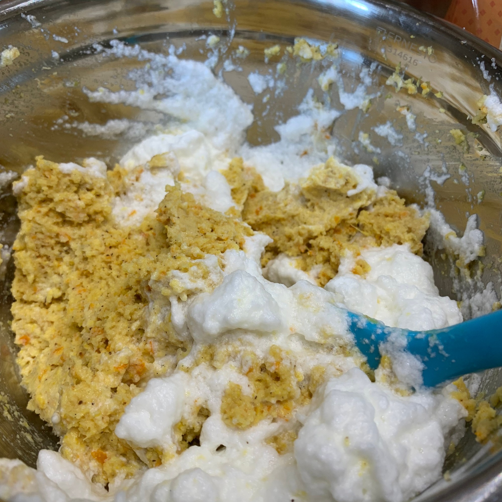 • Next, fold in the egg whites until well-combined.