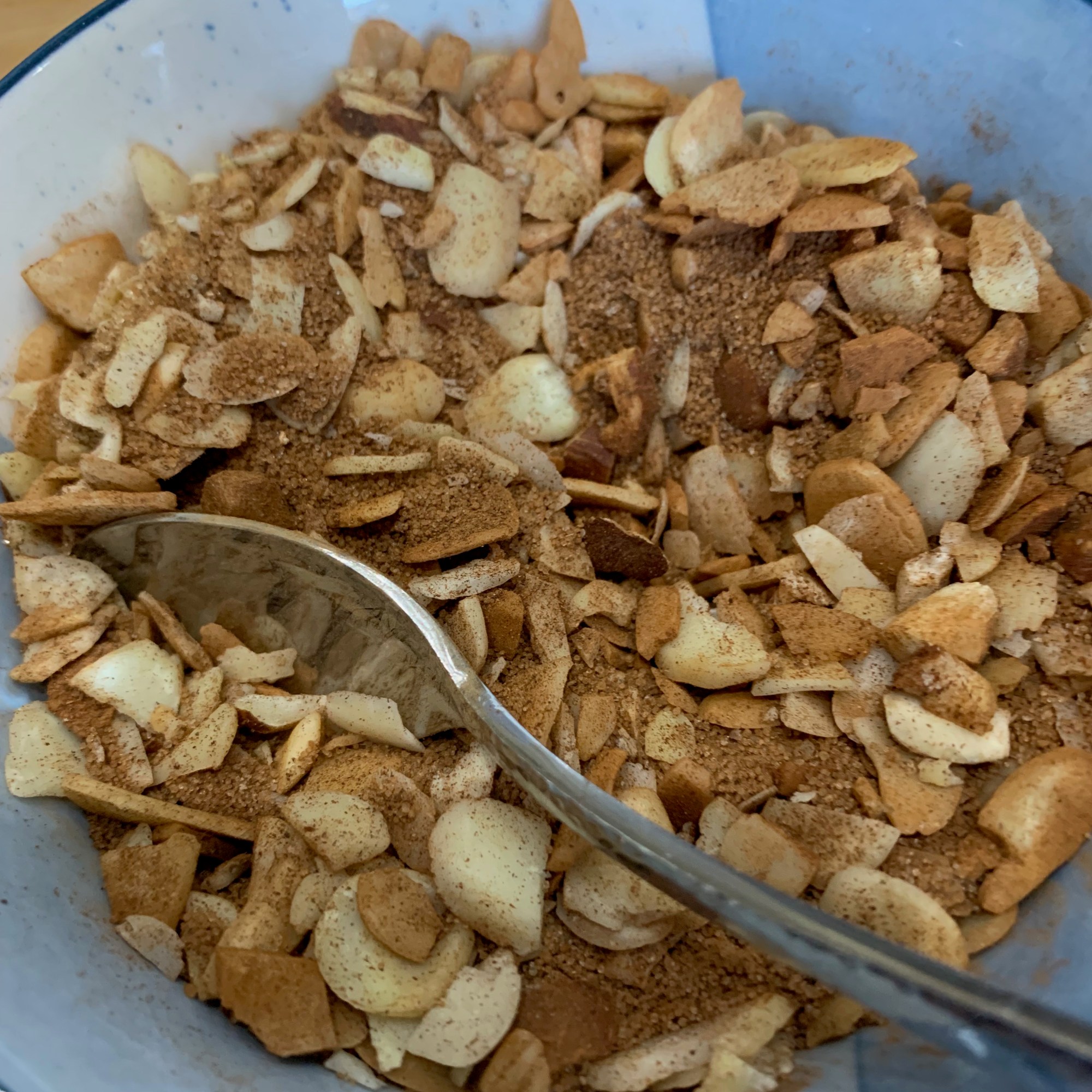 - In a bowl, mix together the walnuts (I used a mixture of almonds and hazelnuts), swerve Brown, and cinnamon. Then, set aside.