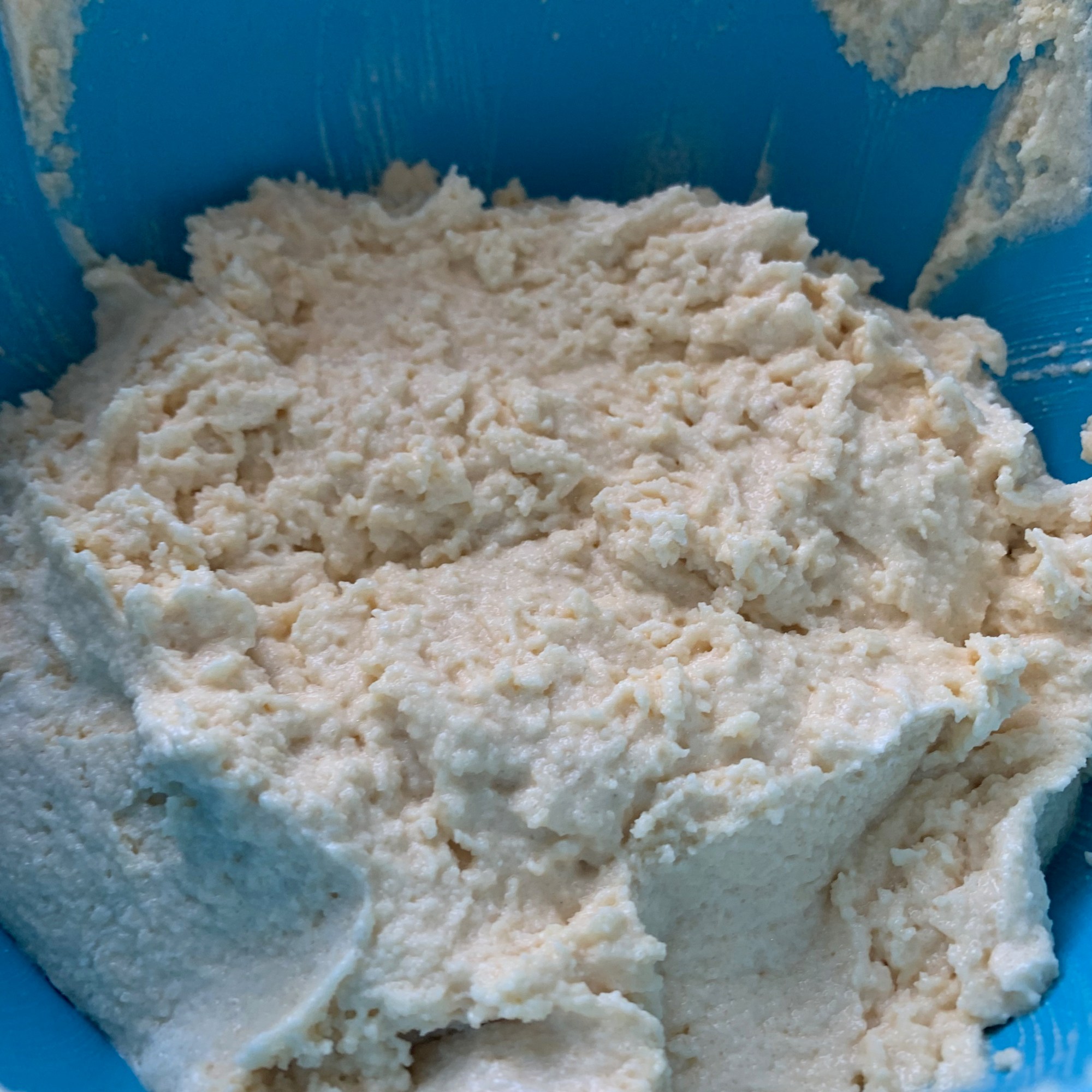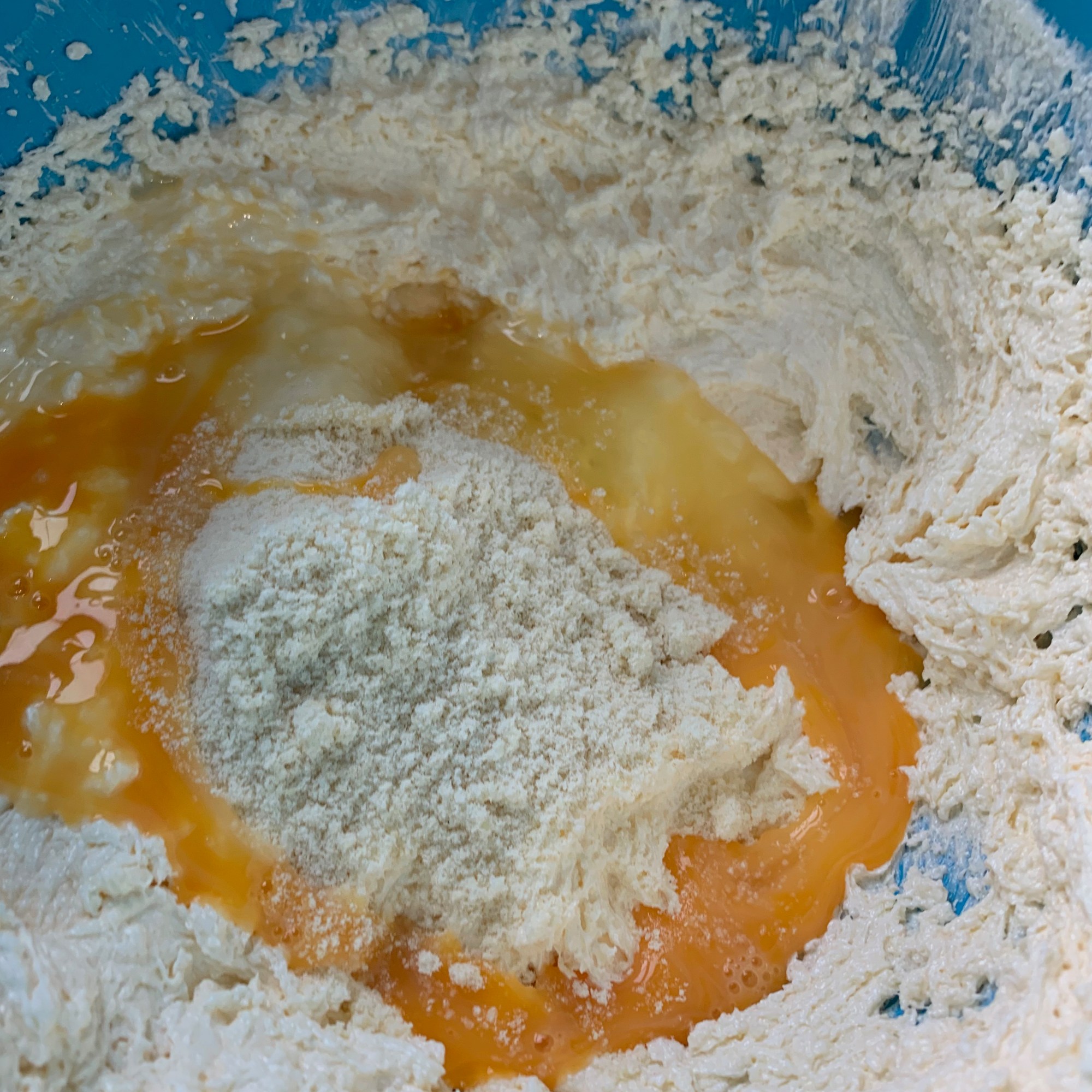 - To the egg mixture, fold in the flour mixture and mix until well combined.