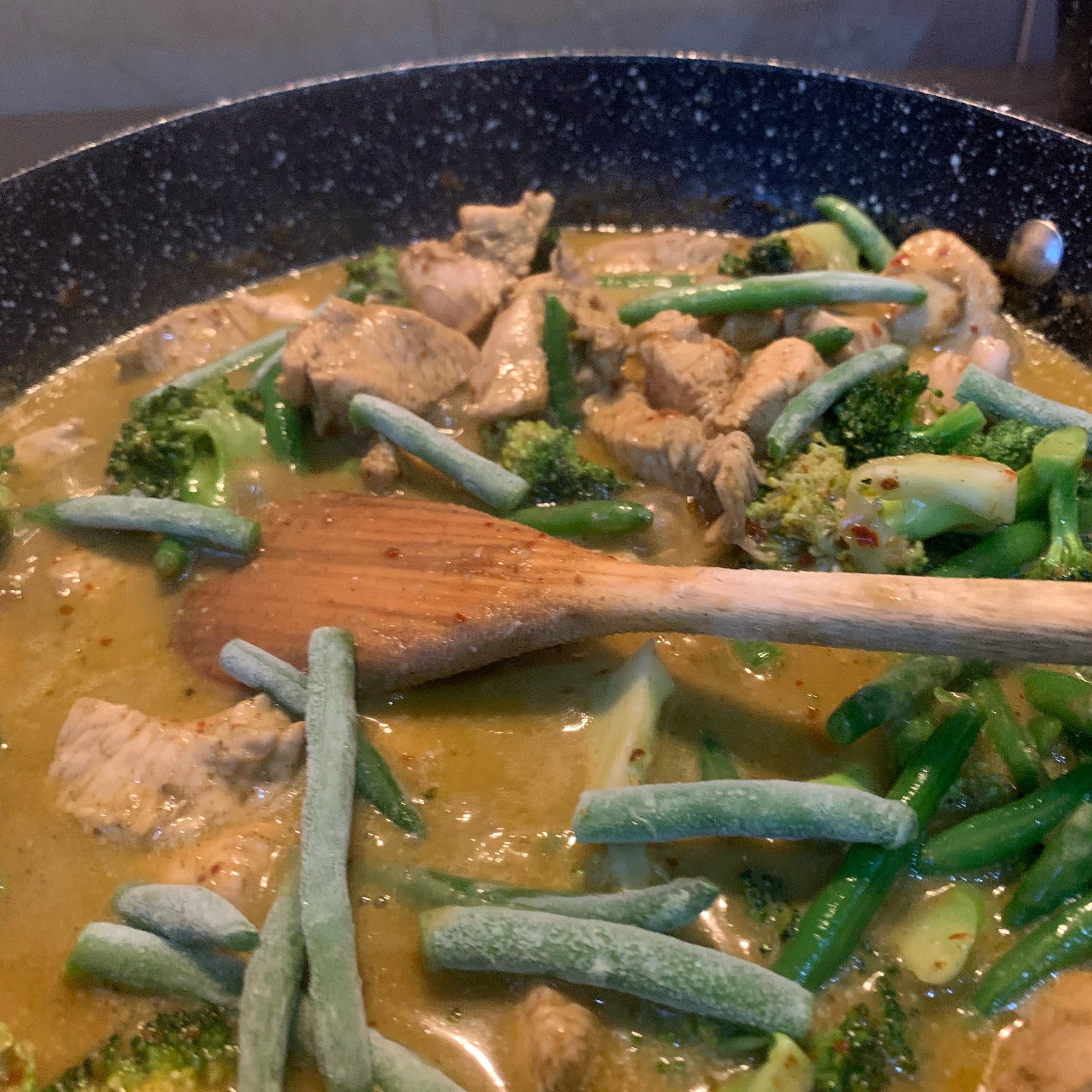 I had a yearning for a different curry and found this Thai curry recipe. I didn’t want to make the curry paste as I had an authentic one in the fridge. This is very easy to make and the flavour sublimely fragrant. I didn’t see the need for bean sprouts or adding a wedge of lime. Instead, I added baby spinach to enhance the nutritional value plus it needed to be used. The finished flavour met my needs after tasting, so check its to your taste if you make it. I would recommend the authenticity of this recipe.