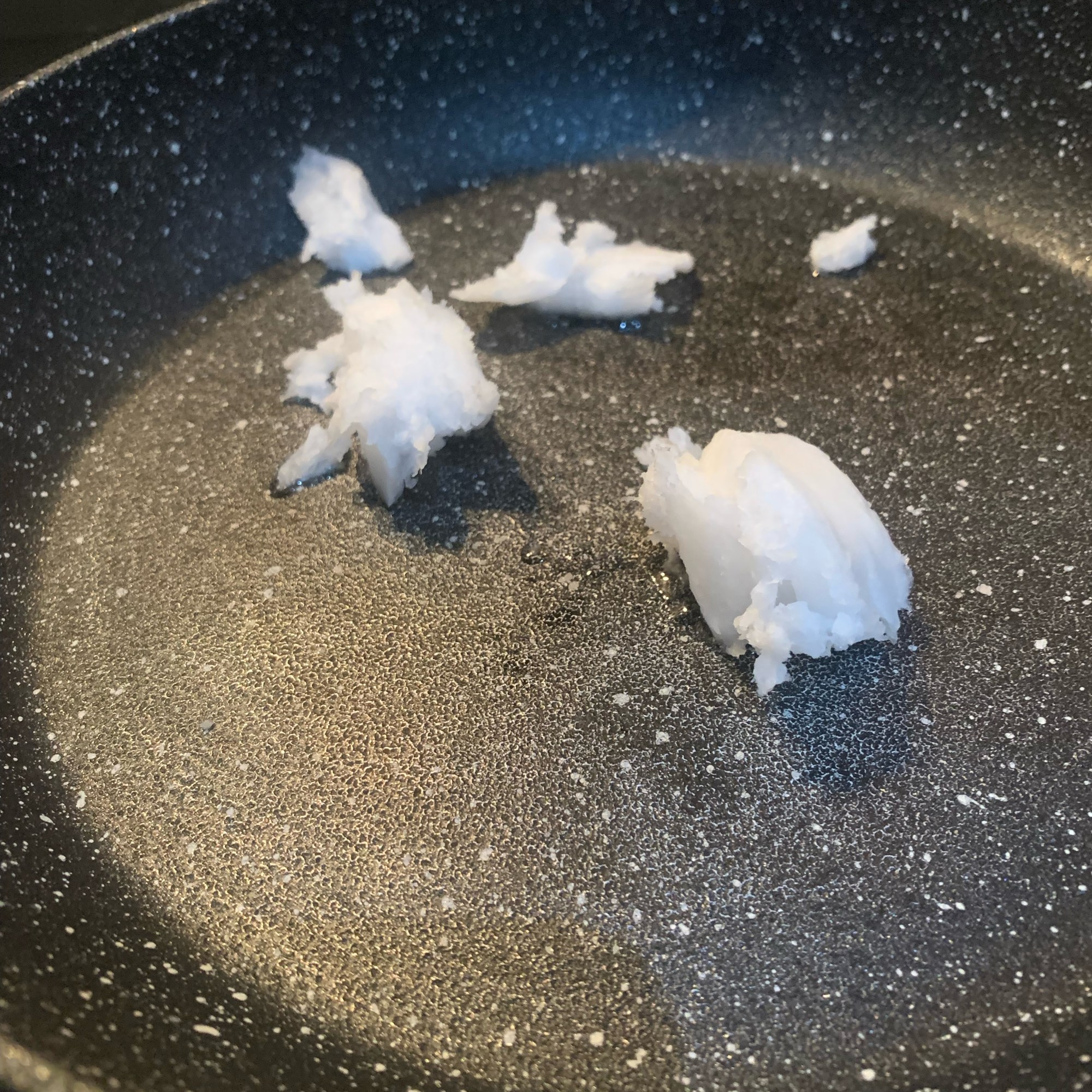 - Add the coconut oil and saute for another 2 minutes, until fragrant.
