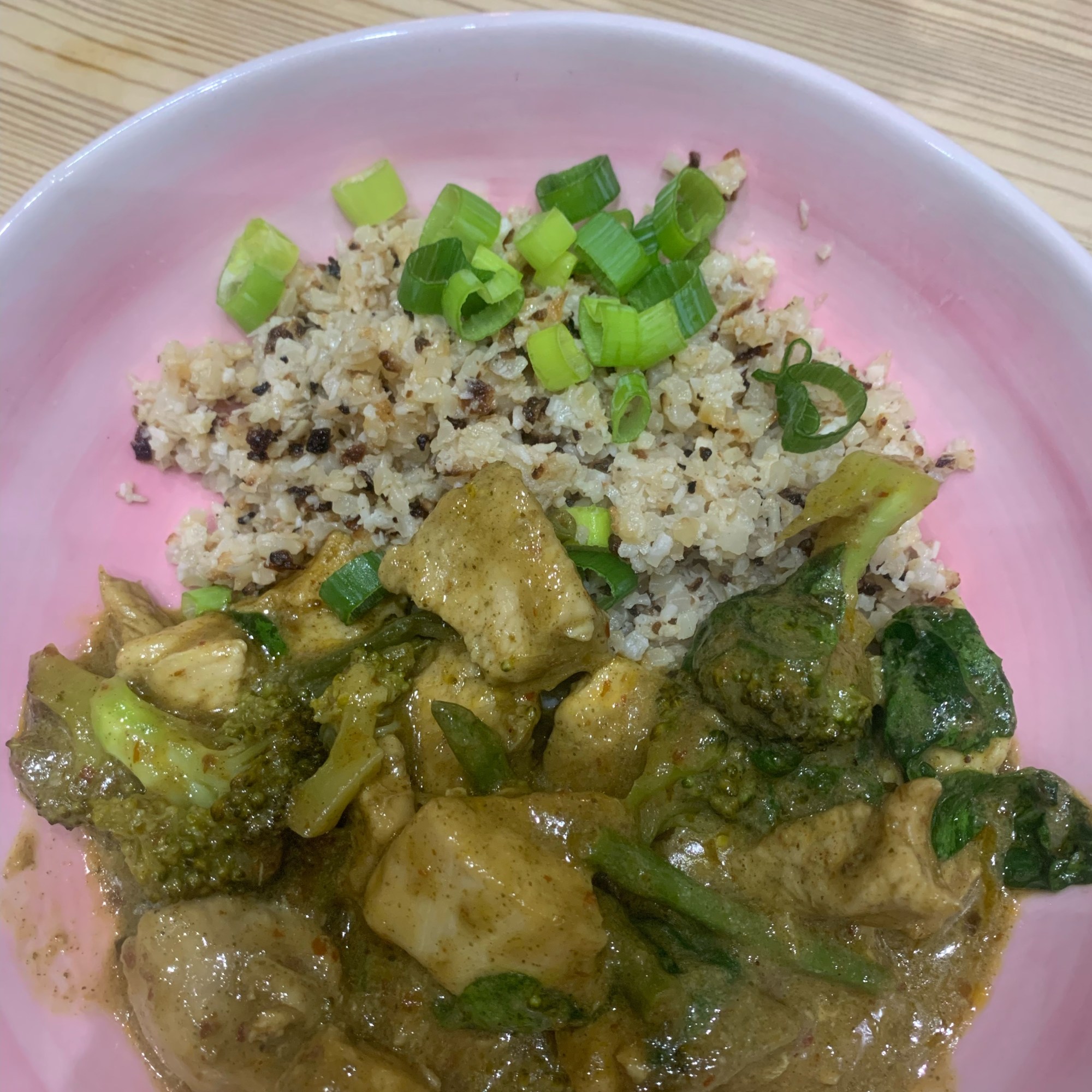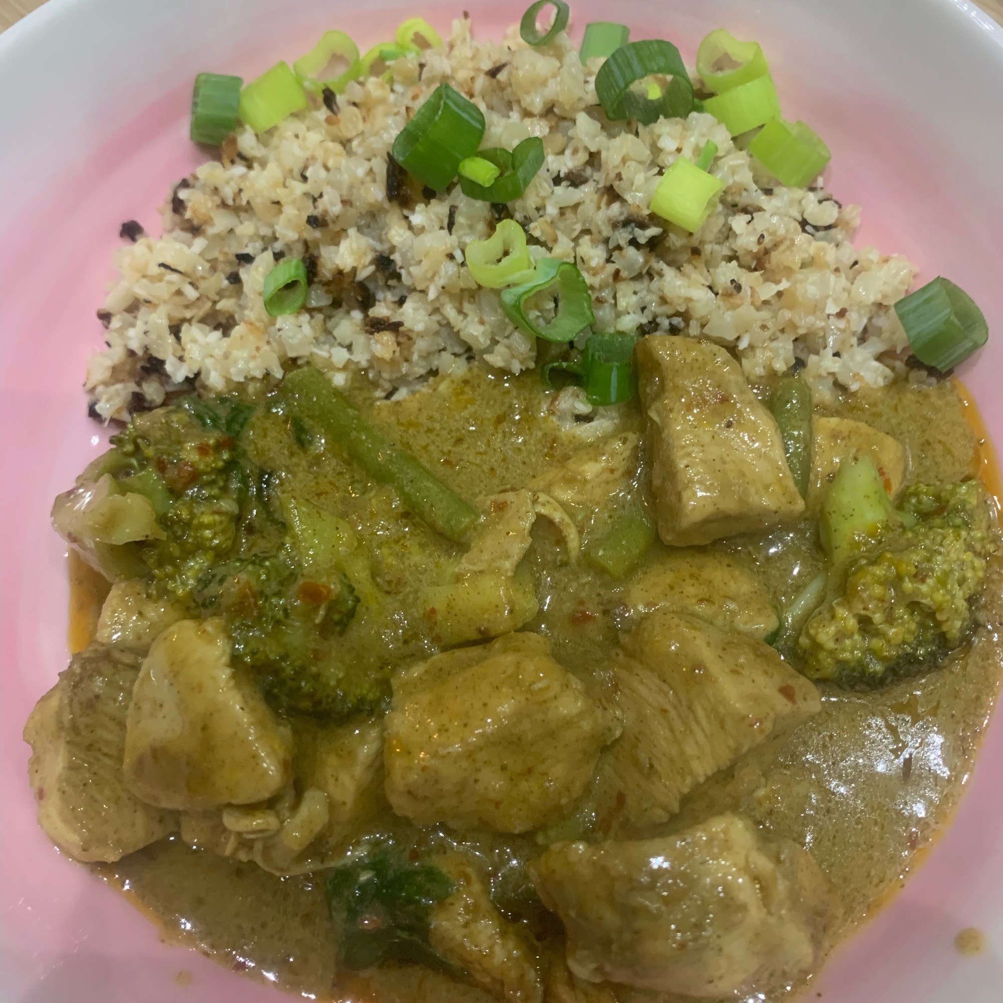 - Once the curry is cooked, serve topped with bean sprouts (if wanted), and a side of cauliflower rice.
